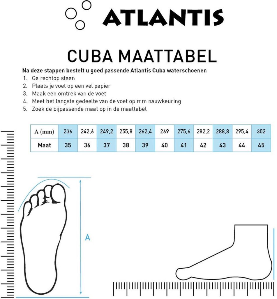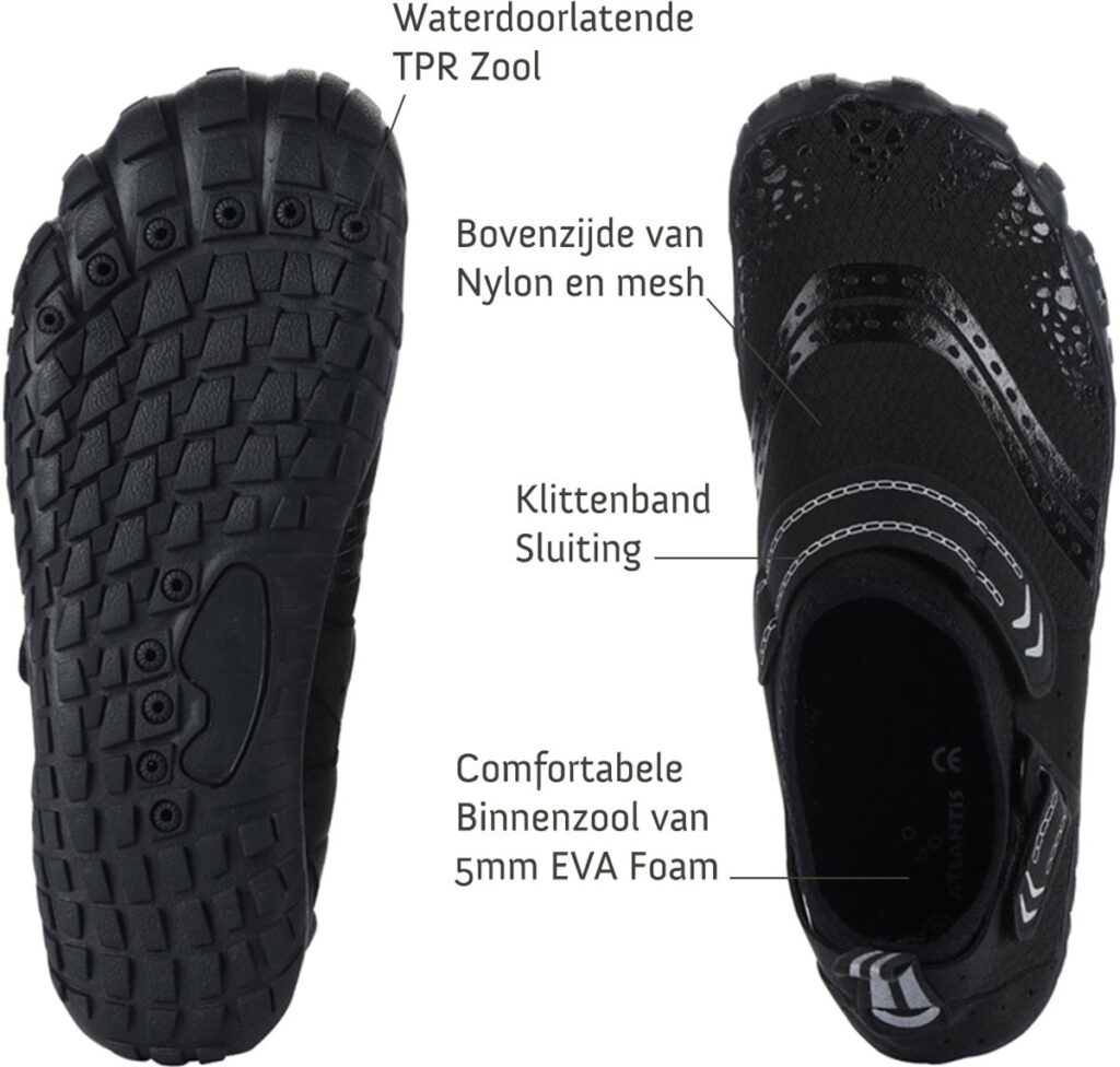 The Cuba Water Shoes from Atlantis provide you with the ideal experience, whether you're on the beach, the boat or anywhere else. The Cuba from Atlantis is a comfortable water shoe with a sturdy removable EVA foam footbed and a flexible rubber water-permeable TPR sole. The upper is made of nylon and mesh. The shoe is easy to close using the Velcro closure.