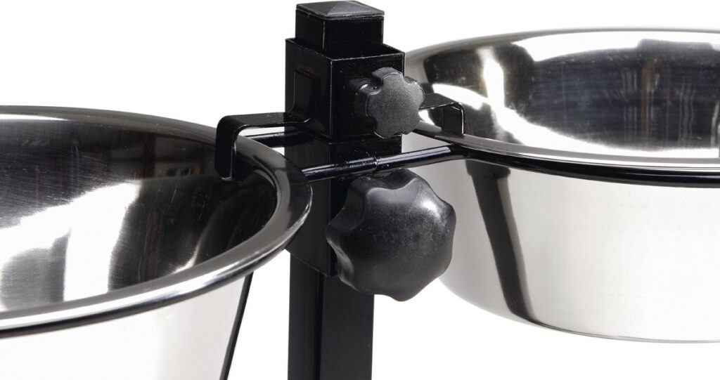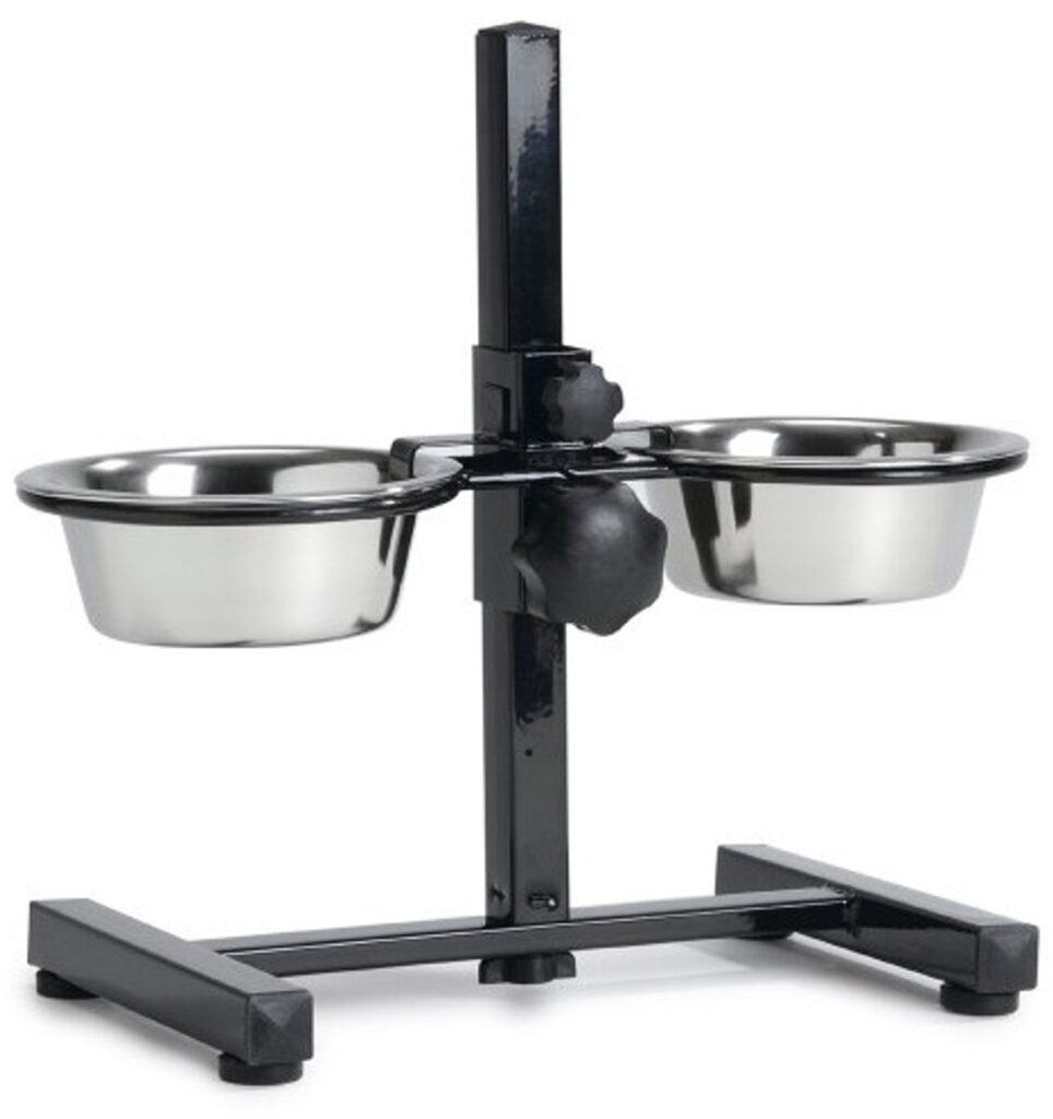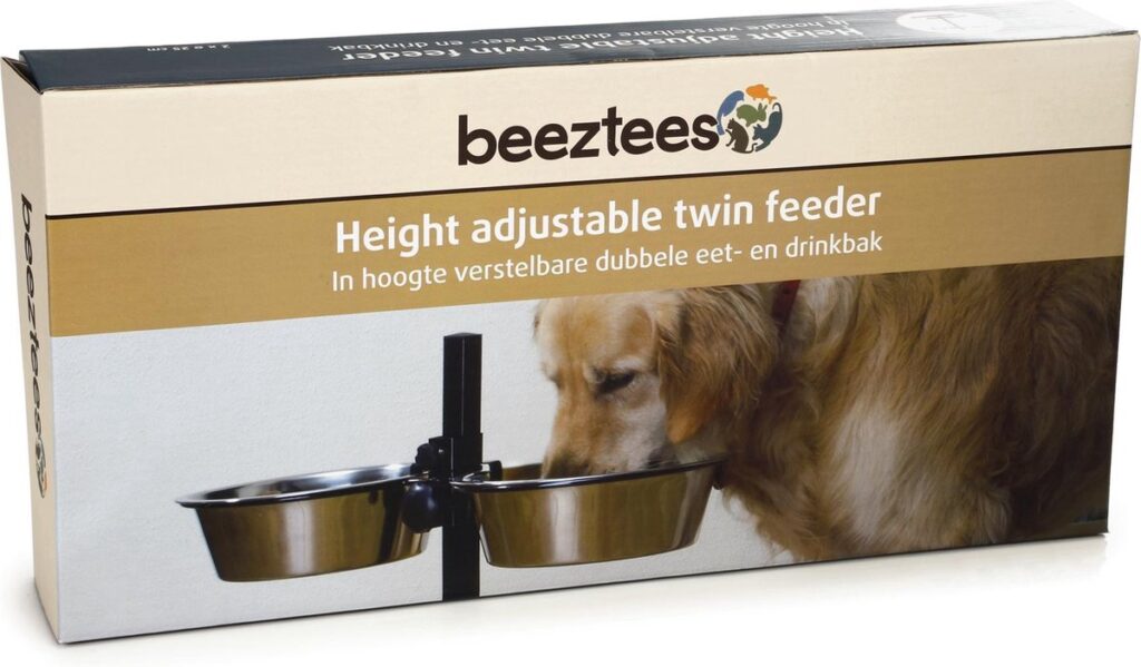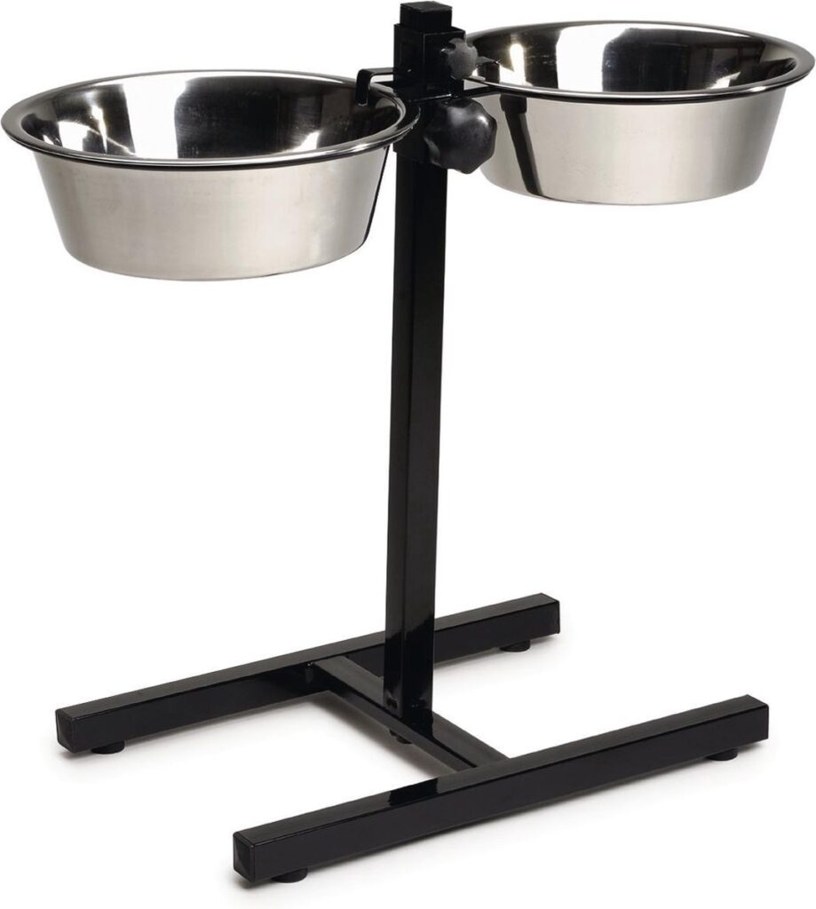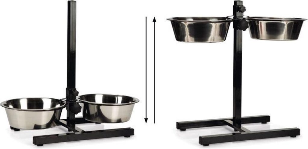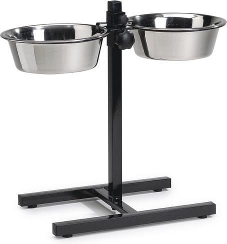 Would you like to have your dog's food and water bowls next to each other? Then the Beeztees Stand with 2 stainless steel bowls is the perfect solution. These stainless steel bowls have a beautiful shine, giving them a slightly more luxurious look. In addition, the stand has rubber caps on the bottom, which serve as anti-slip and protect your floor from scratches. The stainless steel bowls are dishwasher safe. – Made of metal + 2 stainless steel bowls – Non-slip – Stainless steel bowls are dishwasher safe – Available in 5 sizes Dimensions: – bowl diameter 13 cm – 2×380 ml (suitable for puppies and small dogs) – bowl diameter 16 cm – 2×810 ml (suitable for puppies and small dogs) – bowl diameter 20 cm – 2×1630 ml – bowl diameter 25 cm – 2×2530 ml – bowl diameter 28 cm – 2×4050 ml