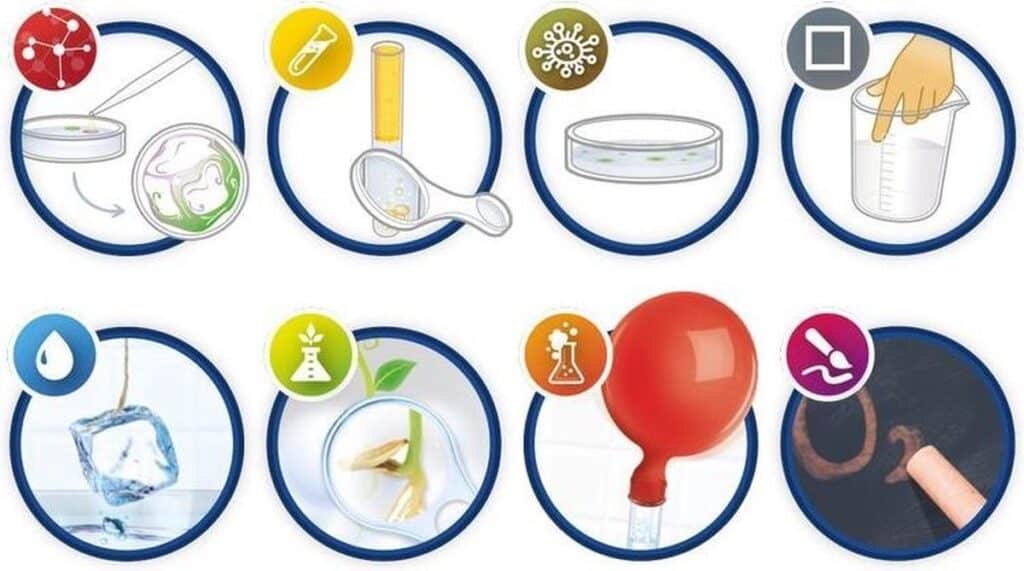 The set includes an illustration for each experiment, providing guidance on how to proceed. With 150 possible experiments, you'll soon be an experienced lab technician!