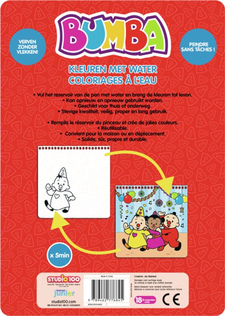 Paint without staining! Fill the pen's reservoir with water and bring the colors to life. Can be used again and again: the pages dry in 5 minutes. Suitable for home or on the go. Sturdy quality, safe, clean and long use. Suitable for ages 3 and up.