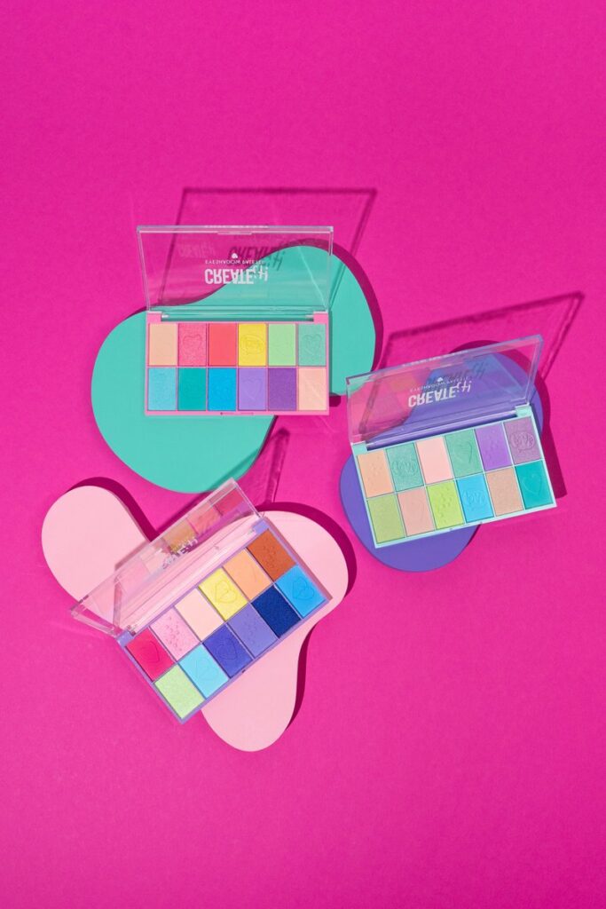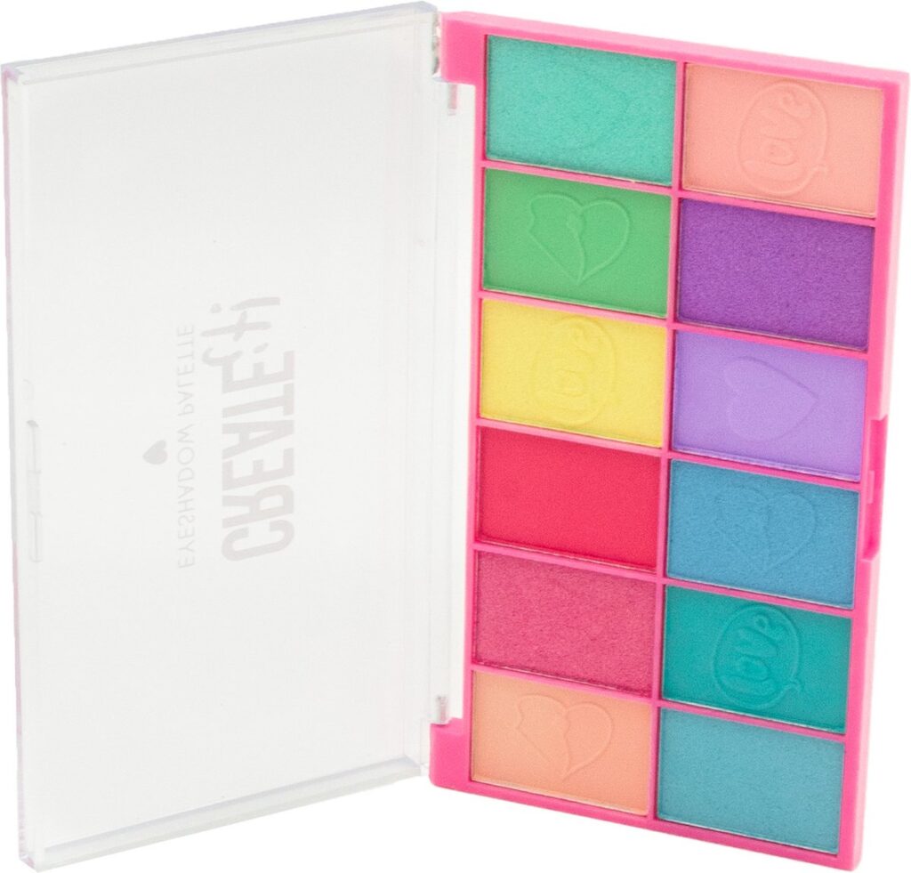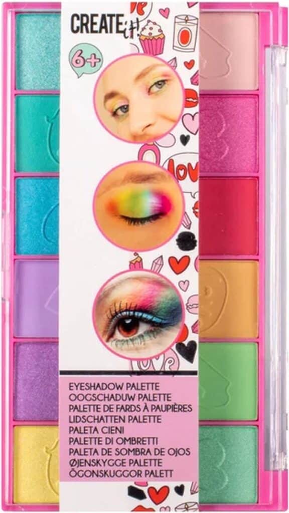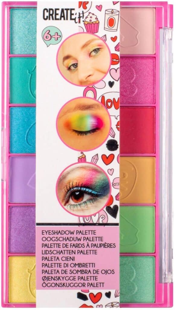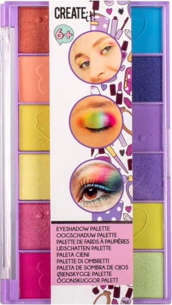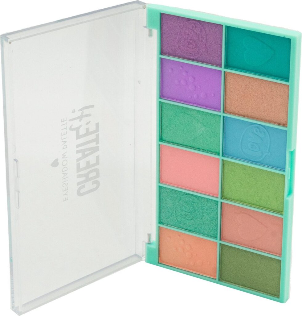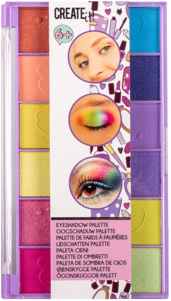 Create the Most Beautiful Rainbow Eyeshadow Looks with the Create it! Eyeshadow Palettes. Twelve Different Colors per Palette. Forget boring eyeshadow, because the Create it! Eyeshadow Palette has the most beautiful colors of all. Turn your eyes into a beautiful colorful rainbow or choose one favorite color. There are 3 different palettes to choose from, each palette contains 12 different colors. This means you can collect 36 colors of eyeshadow! Have a real beauty afternoon together with your girlfriends and give each other the most beautiful eye looks! The palettes are available in pink, purple and green.