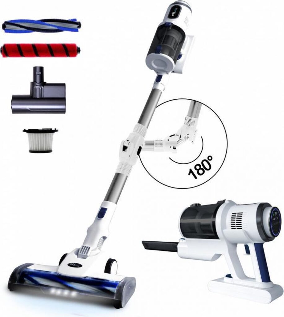 Done with 3 different devices to get all of your house squeaky clean. Meet meet the Eziclean Cyclomax R420 stick vacuum cleaner. This cordless stick vacuum cleaner can be used for large areas, but also for small hard-to-reach areas. Thanks to the unique motor with MAGNETIK™ technology you will enjoy a powerful 134 watts of suction power! No surface surface knows secrets for this ultra light, cordless and easy operable stick vacuum cleaner. ADVANTAGES OF THE STICK VACUUM CLEANER * Ergonomic * User-friendly * Very powerful * Lightweight (1.3 kg) * Prevents back and shoulder pain * Durable in use PREVENT BACK AND SHOULDER COMPLAINTS THROUGH THE ERGONOMIC DESIGN. Your Eziclean Cyclomax R420 cordless stick vacuum cleaner is equipped with a sturdy tube. With two clicks you can easily dismantle the tube so you can also small dirty spots easily. This allows you to easily clean large surfaces, but also high and hard-to-reach places are no problem. Get a wide range of accessories included that help to get your space from floor to ceiling effortlessly clean. UP TO 99.97% LESS BACTERIA AND PARASITES The combination of the HEPA 13 filtration system with the steel pre-filter provides up to 99.97% fewer bacteria and parasites in the home. By using the Eziclean HEPA 13 filter, this stick vacuum is perfect for people with asthma and allergies. VERY LIGHT IN WEIGHT With a light weight of 1.3 kilos, this stick vacuum cleaner is one of the lightest on the market. With this ultra light stick vacuum cleaner, you will clean every corner of your home clean without experiencing painful shoulders. SMALL BUT POWERFUL The latest generation motor, with MAGNETIK™ technology, provides a powerful 134 watts of suction power! The built-in 2500mAh battery is fully charged and provides up to 55 minutes of outstanding suction allowing your home to be completely cleaned in one effort. TOUCHSCREEN The stick vacuum cleaner is equipped with a high-quality and easy-to-use touchscreen. Easily choose from 3 speeds, check the battery status or get an alert when the tube or brush needs cleaning. WIN THE BATTLE AGAINST PET HAIR More often we hear from people that they suffer from pet hair removal. Animal hair that gets stuck in everything, annoying right? Win the battle against animal hairs with our specially designed pet hair brush. This brush gets to the root of the problem, removing removes up to 99% of pesky pet hair! WHAT'S IN THE PACKAGE? * 1x Cordless stick vacuum cleaner * 1x Powerful 2500 mAh battery (built-in) * 2x Brush (for pet hair and hard floors) * 1x Charging station * 1x Power cable * 1 x Manual 100% MONEY BACK GUARANTEE We stand behind the durability of our goods and offer an unconditional guarantee. If you are not completely satisfied with our products, we will work with you to find an appropriate solution. Choose your health today and quickly benefit from your Eziclean Cyclomax R420 stick vacuum cleaner.