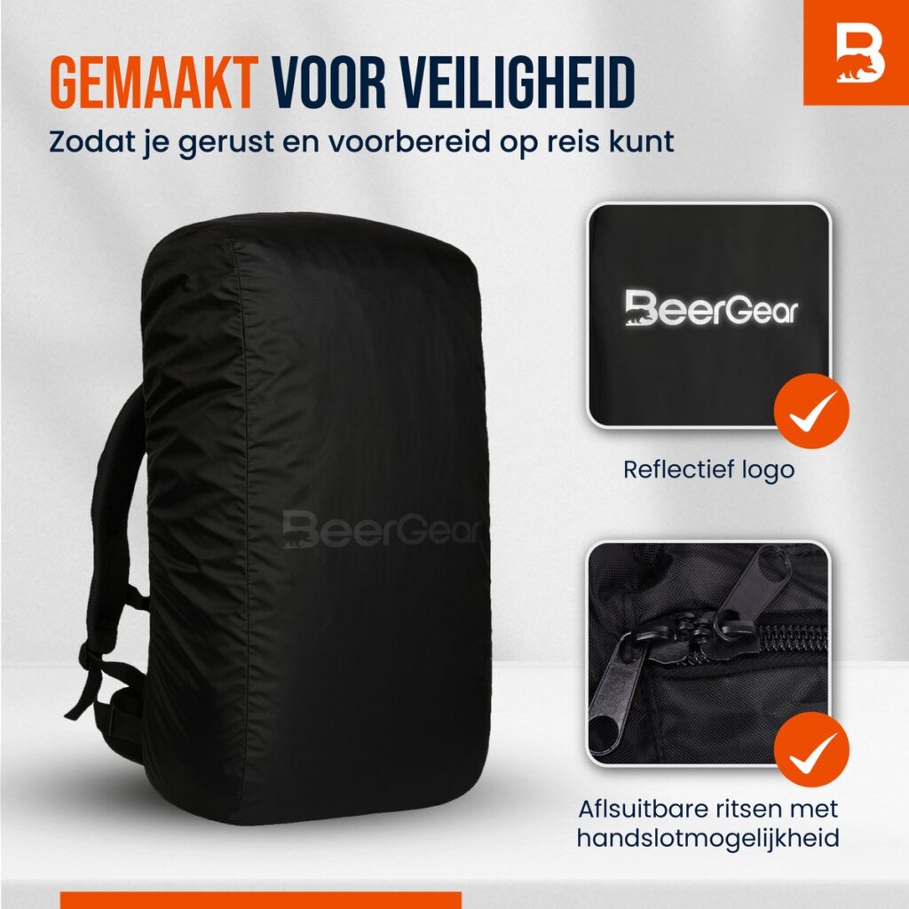 This BeerGear® flight bag for backpacks and rain cover in one is the ideal travel companion for adventurers and backpackers. The cover offers excellent protection against rain, dirt, and damage during transport, while you can also use it as a flight bag for air travel. Thanks to its smart design, you can easily switch between full protection and immediate carrying comfort. With its generous capacity and thoughtful details, this cover is perfect for long journeys and active trips.