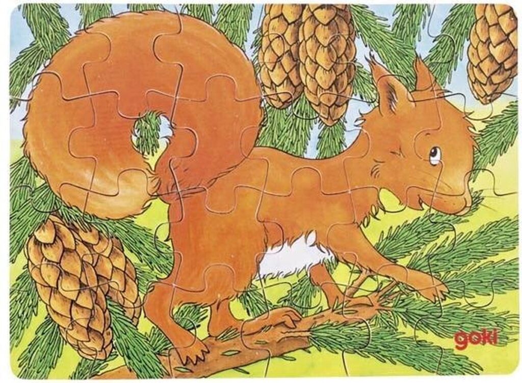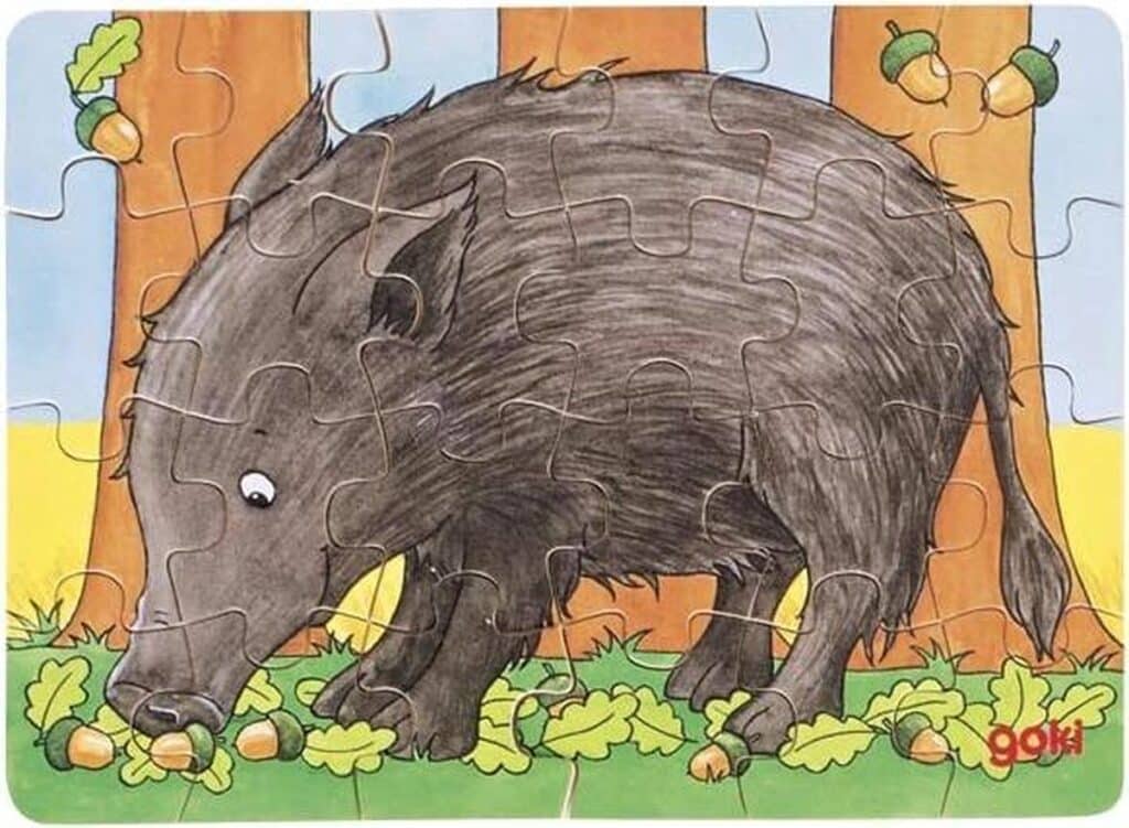 With this fun animal puzzle, you almost feel like you're standing in the middle of the forest! The puzzle is available in six different animals: boar, fox, deer, squirrel, badger, and owl. The puzzle consists of 24 pieces and measures 16.5 x 12 x 0.3 centimeters.