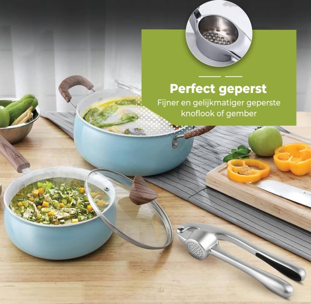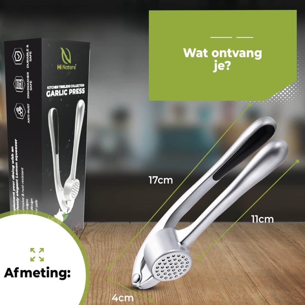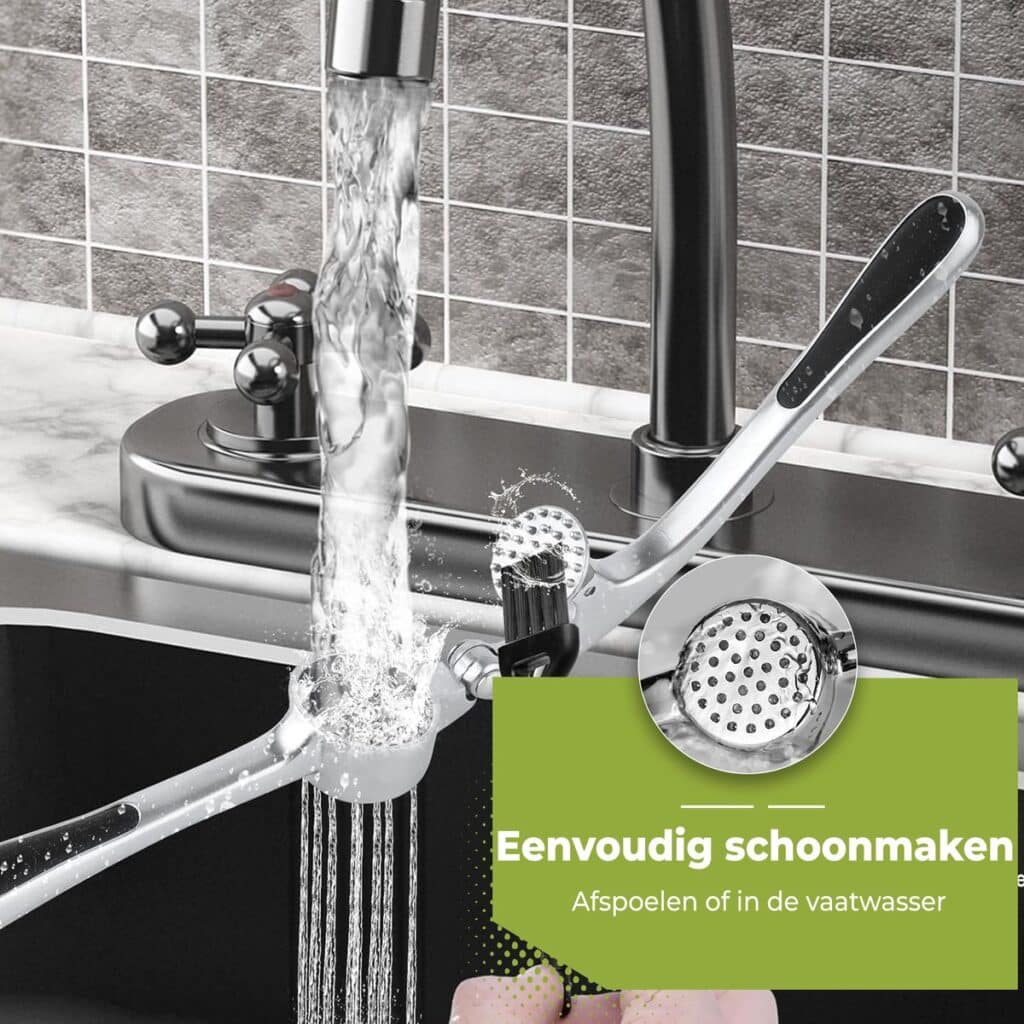 This garlic press is made of high-quality stainless steel and is dishwasher safe. This means you can simply place the press in the dishwasher after use, making cleaning a matter of seconds. No more hassle with manual washing, just quickly and easily ready to use again.