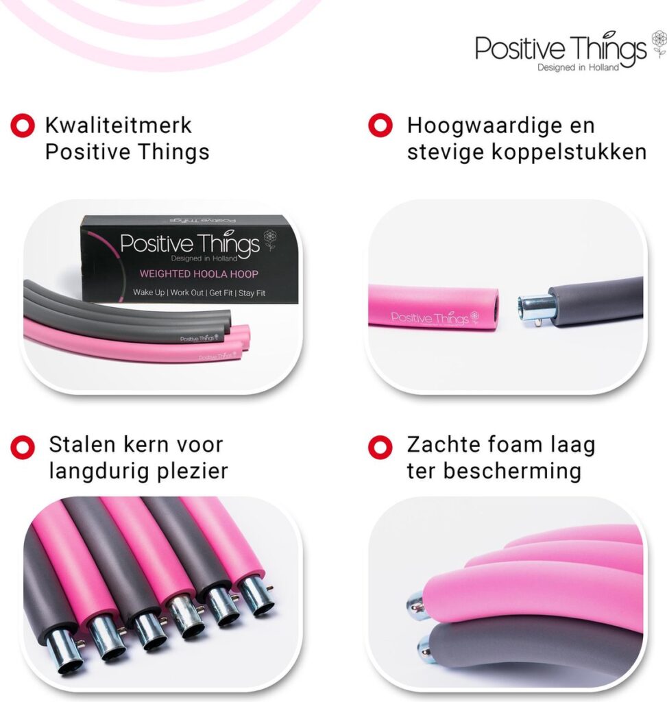 The hula hoop from Positive Things is very easy to use. This hula hoop has a diameter of 96 cm so it requires very little space to practice this sport. The extra weight added to the hula hoop provides more challenge and faster results. The hula hoop is made of soft foam and also has a massaging effect on the muscles, making recovery faster and reducing muscle soreness. So for a quick, easy and yet very effective work out you should definitely buy a hula hoop at Positive Things!