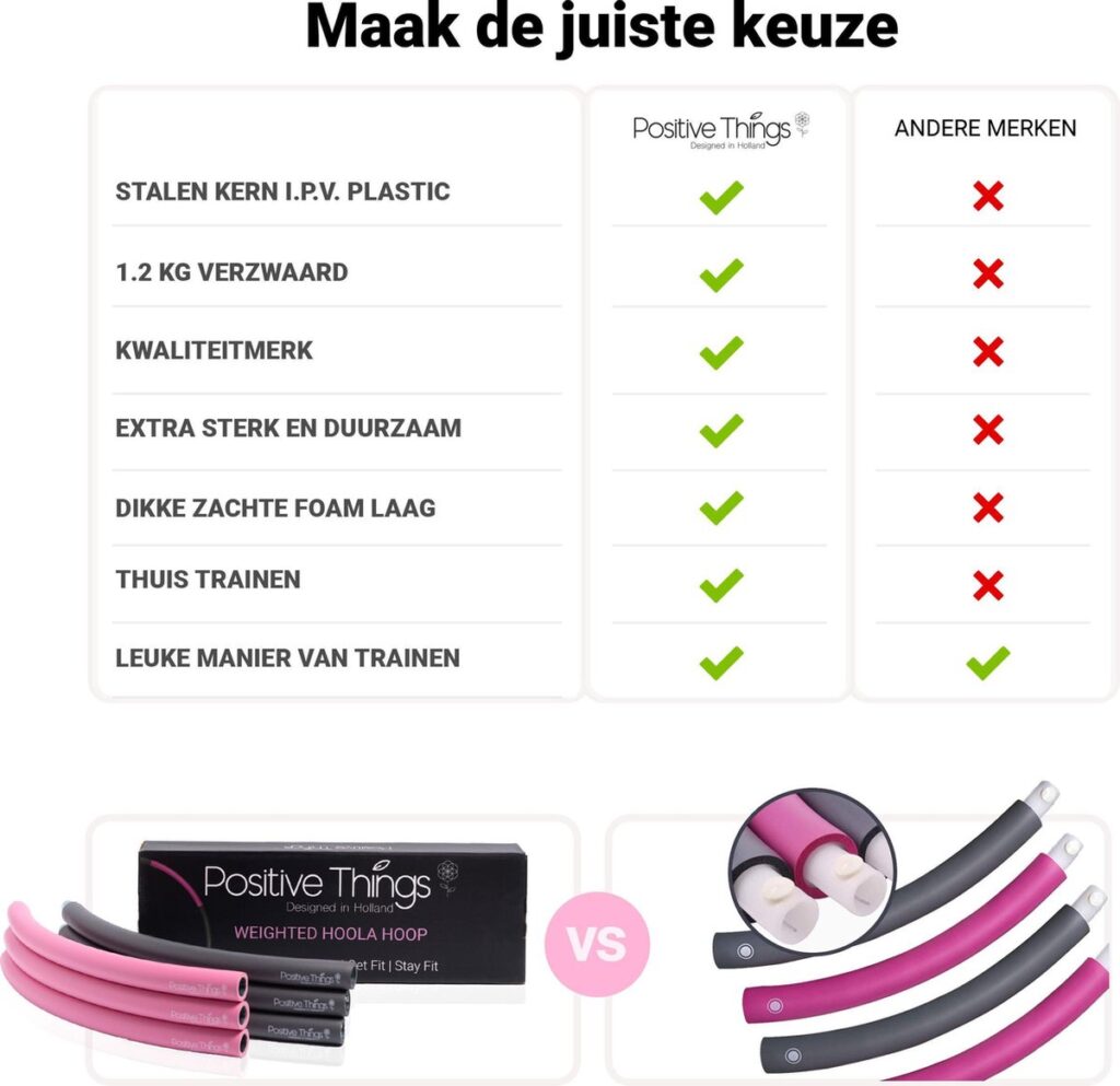 Because the core is steel and a high-quality foam layer is used, the fitness hula hoop of is of high quality and feels great! The weight of the hula hoop is in the weighted steel core, this ensures that you get a fit body faster. If you exercise with this hula hoop, you will burn as many calories as on the treadmill! Because the hula hoop is made of soft foam it feels very comfortable and even has a massaging effect.