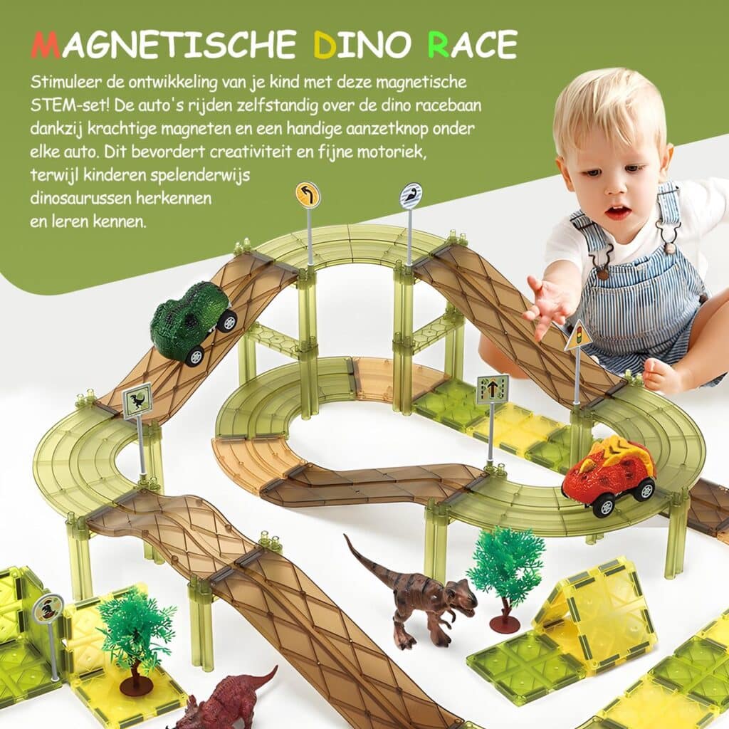 With the JUST23 Magnetic Tiles Dino Race Track Set, you give the perfect gift that stimulates children's imagination while providing educational value. Let your little ones become the architect and racer of their dreams and enjoy hours of fun in their own dino racing adventure land
