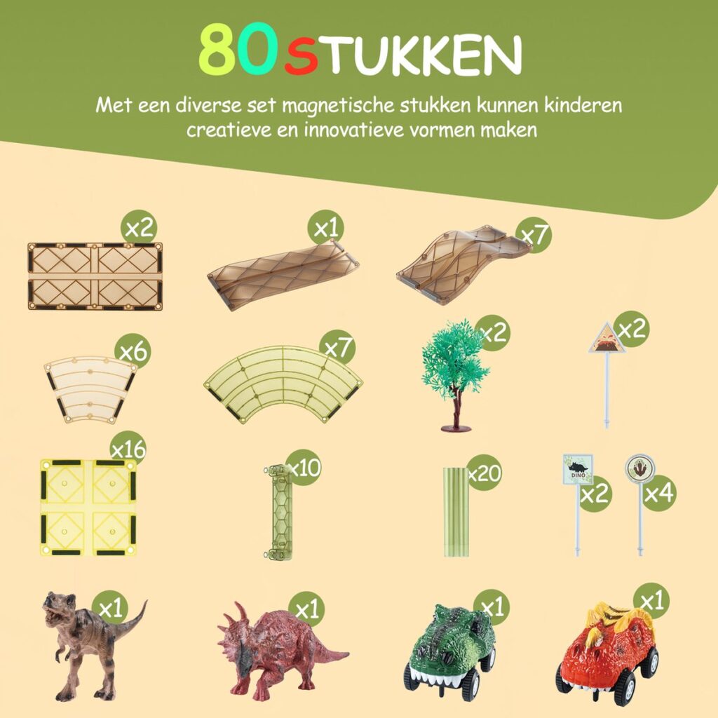 Package Contents of the JUST23 Magnetic Tiles Dino Race Track Set (80 pieces):
