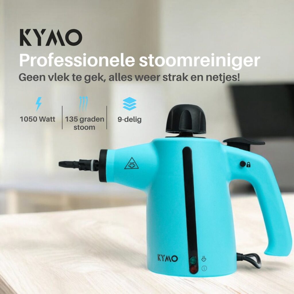 Wil je elke dag genieten van een sprankelend schoon huis zonder gedoe? De KYMO Stoommop is jouw ideale partner voor moeiteloze schoonmaaktaken. Met deze krachtige 9-in-1 stoomreiniger maak je elk oppervlak grondig schoon en desinfecteer je je huis met de kracht van stoom zonder schadelijke chemicaliën. De Kymo Stoommop verwijdert tot wel 99,9% van alle bacteriën en ziektekiemen en helpt tegelijkertijd bij het verminderen van huisstofmijt, allergieën en verkoudheidsklachten. Zo zorg je niet alleen voor een glanzend schoon huis, maar ook voor een gezondere leefomgeving voor jou en je gezin. Voordelen van de KYMO Stoommop: * Krachtige desinfectie: Doodt 99,9% van bacteriën en ziektekiemen met stoom, zonder chemicaliën. * Zachte microvezelpads: Reinigt vloeren en tapijten zonder krassen of sporen achter te laten. * Tapijtglider: Doodt 99,9% van bacteriën zelfs op je tapijt met onze handige tapijtglider * Ergonomisch ontwerp: Lichtgewicht en met een comfortabel handvat voor moeiteloos schoonmaken. * Veelzijdige reinigingsmogelijkheden: Verander moeiteloos in een handstoomreiniger met de meegeleverde accessoires voor ramen, voegen, meubels en veel meer. * Variabele stoomregeling: Pas de stoomafgifte aan jouw behoeften aan, met een autonomie van 20 minuten per volle watertank (400 ml). * Eenvoudig manoeuvreren: De zwenkbesturing en het driehoekige ontwerp maakt het makkelijk om rondom meubels en in lastige hoeken te komen. Diepe Reiniging Met de KYMO Stoommop verwijder je hardnekkig vuil en krijg je je vloeren, tapijten en andere oppervlakken tot in de diepte schoon. Dankzij de krachtige motor van 1300W, de geavanceerde stoomtechnologie en de zachte microvezelpads wordt je huis grondig gereinigd, zelfs bij oudere vlekken en moeilijk bereikbare plekken. Veilig en Efficiënt Met de KYMO Stoommop heb je de controle over je schoonmaak. Pas eenvoudig de stoomhoeveelheid aan met de variabele stoomregeling, zodat je veilig en effectief kunt reinigen. Of je nu delicate oppervlakken of hardnekkig vuil aanpakt, je voorkomt schade door de stoomintensiteit af te stemmen op je behoeften. Reinig met vertrouwen en zorg voor een grondig resultaat zonder zorgen. Compact en Handig Met een 5 meter lang snoer geniet je van ongeëvenaarde bewegingsvrijheid tijdens het schoonmaken. Het slimme, compacte ontwerp maakt opslag eenvoudig, terwijl het lichte gewicht ervoor zorgt dat je de stoommop moeiteloos kunt verplaatsen en gebruiken. Inhoud van de verpakking: * KYMO Stoommop * Tapijtglider * 2 Microvezeldoeken voor vloerreiniging * Kleine microvezeldoek voor glas of het doden van bacteriën op de kussens * Schuin mondstuk voor hardnekkig vuil * Grote en kleine ronde borstel voor voegen en moeilijk bereikbare plekken * Lange borstel voor diepe reiniging * Ruitenwisser voor streeploos schone ramen of douchewanden * Verlengstuk voor handstoomfunctie * Maatbeker voor vullen waterreservoir. * NL, FR, DE en EN Handleidingen Bestel vandaag nog jouw KYMO Stoommop en ervaar zelf hoe eenvoudig het is om je huis dagelijks fris en hygiënisch te houden!