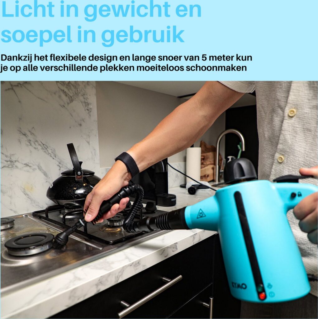 Met deze stoomreiniger kun je schoonmaken zonder gebruik te maken van schadelijke chemicaliën. Dit apparaat werkt uitsluitend met kraanwater, dat door verhitting krachtige stoom produceert. De 135 graden stoom verwijdert moeiteloos vuil, vet en 99.9% van alle bacteriën, voor een grondig schoon resultaat. Zo zorg je elke keer weer voor een stralend schoon huis, terwijl je het milieu ontziet en geen schadelijke stoffen gebruikt. Kies voor duurzaam en effectief schoonmaken met deze milieuvriendelijke stoomreiniger!