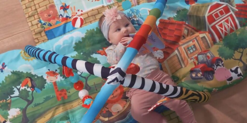 The mat develops hand-ear coordination and eye-hand coordination. When a child reaches for toys, it strengthens the muscles and improves the ability to hold the head in a certain position.