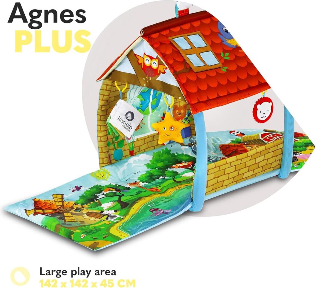 Thanks to the folded sides and adjustable poles, the mat can be transformed into a large house, which makes playing much more appealing for the child.