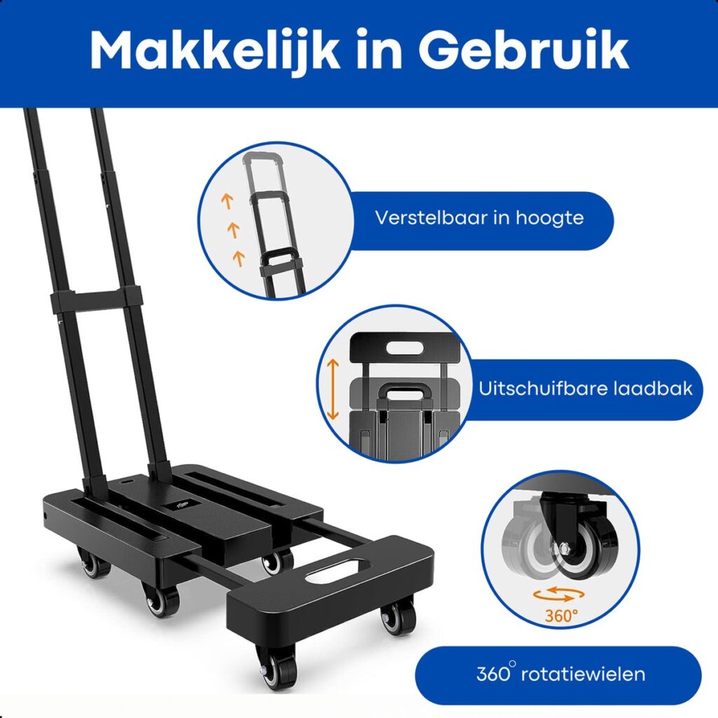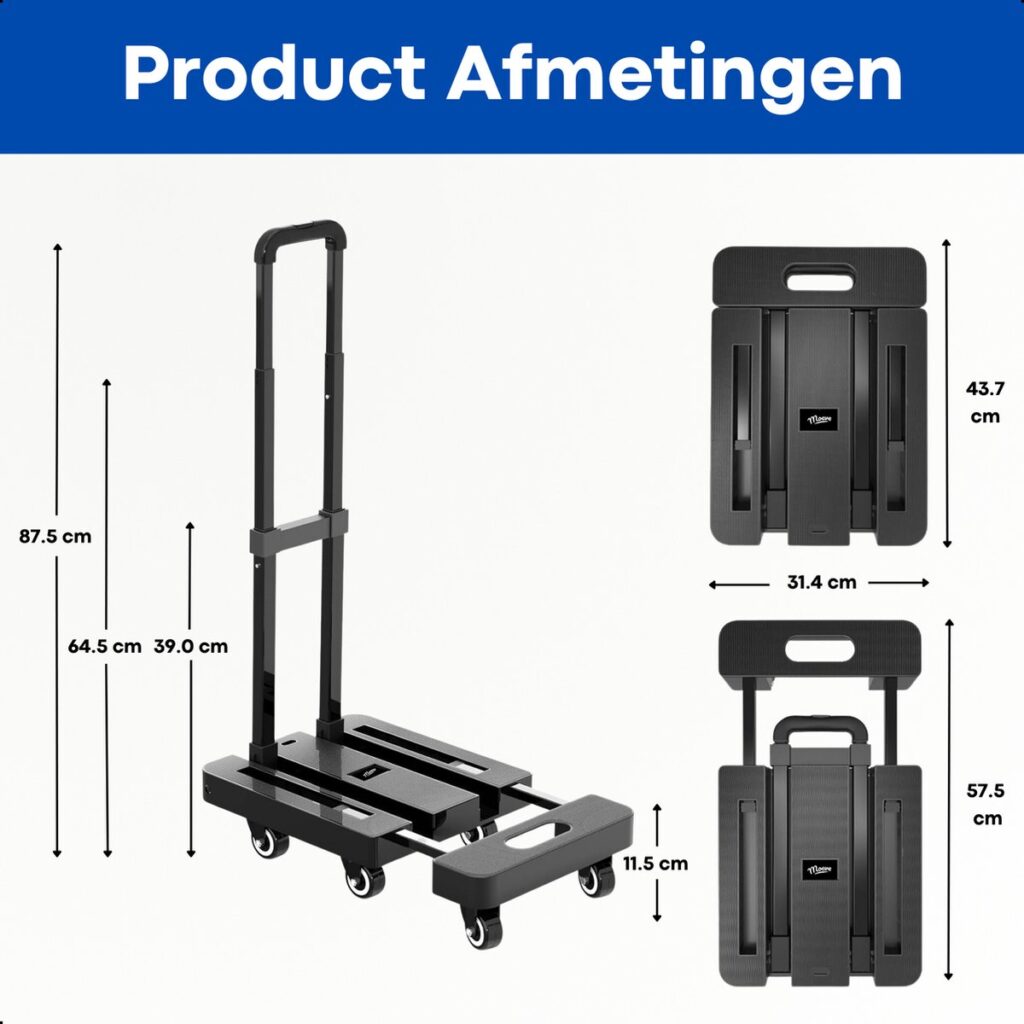 Help with heavy work is always useful. With the Moeve hand truck, moving large and heavy objects is a piece of cake. This transport cart has an impressive load capacity of 225 kg. This makes it easy to move all your heavy boxes, tools, or furniture! With Moeve hand trucks, you're sure to be in good hands!
