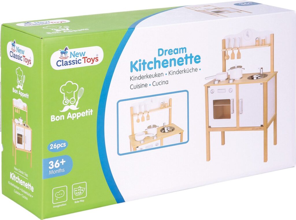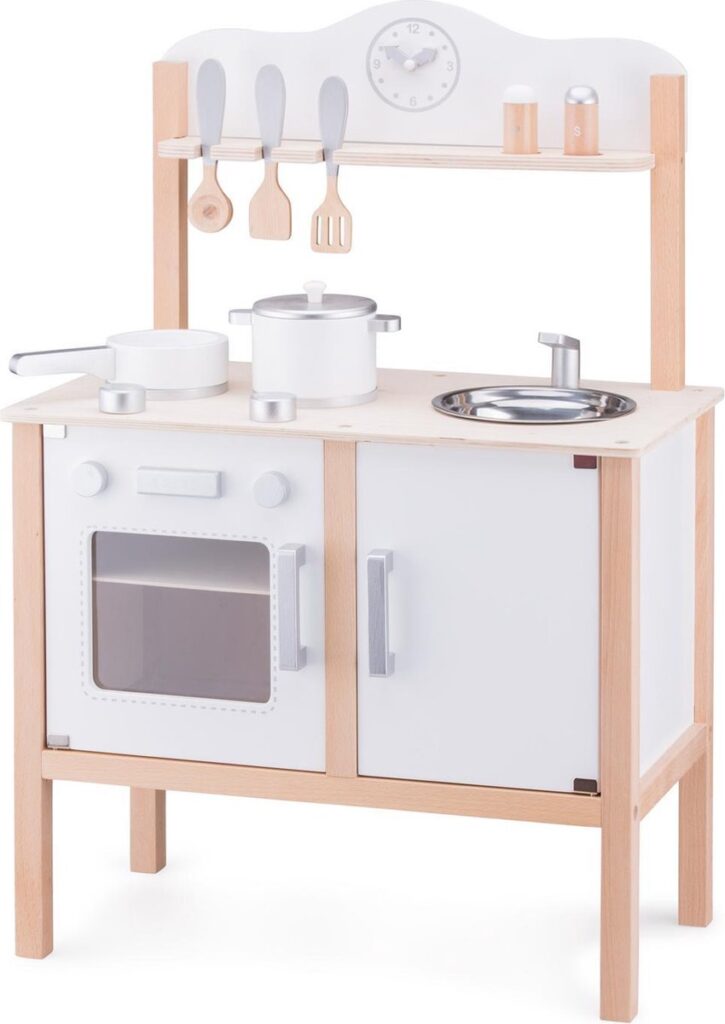 Deze houten keuken van New Classic Toys is onderdeel van de Bon Appetit productlijn. Snijden, bakken, koken en aan tafel! De potjes, pannetjes, snijsetjes en keukentjes zijn absolute musthaves voor kleine keukenprinsjes en -prinsesjes.