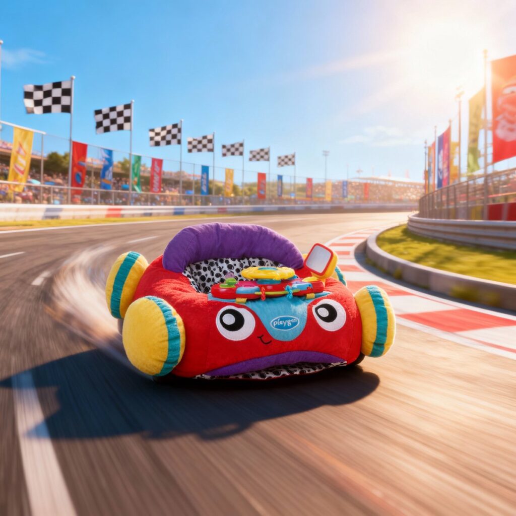 DEVELOPMENT IN TURBO MODE: Fine motor skills (grasping + turning) Sensory explosion (light + sound + texture) Cause and effect (pressure = horn!) Seating balance & core strength – preparation for crawling Imagination & role play – first "I'm driving!"