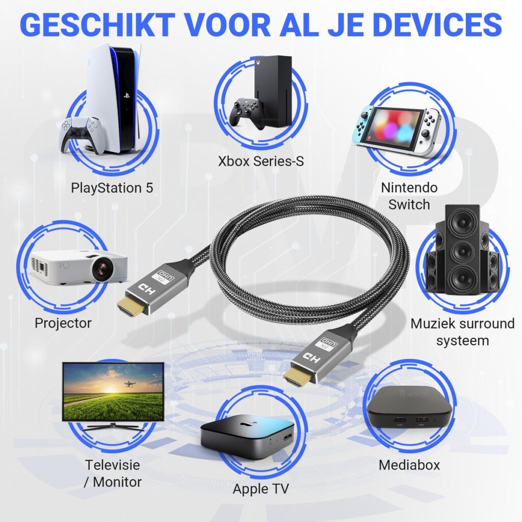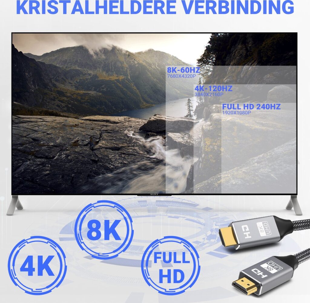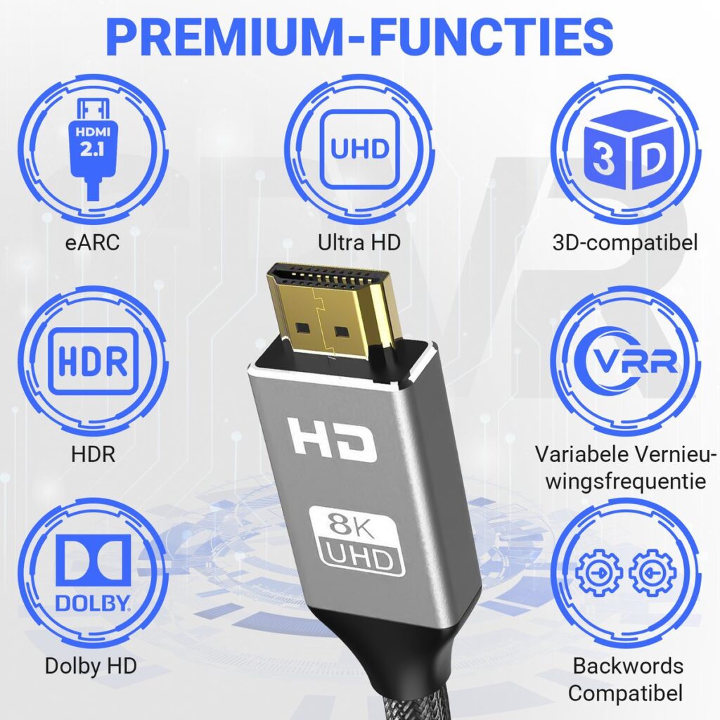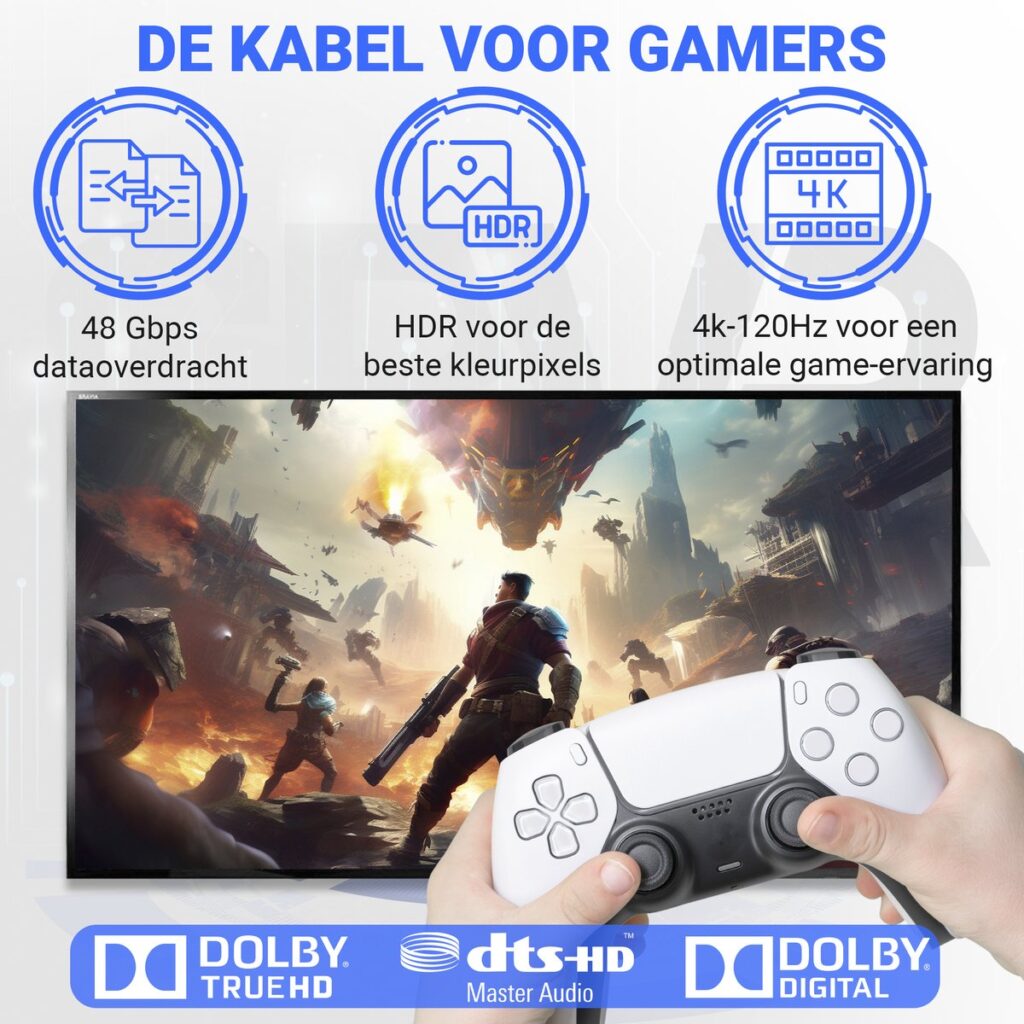 Enjoy crystal-clear picture and sound with the HDMI 2.1 Cable, designed for the best performance in your home theater or gaming setup. With a transfer speed of 48 Gbps, you can stream 4K images at 120 Hz and even 8K without signal loss. This cable is ideal for the latest game consoles such as PlayStation 5, Nintendo Switch, and Xbox Series.