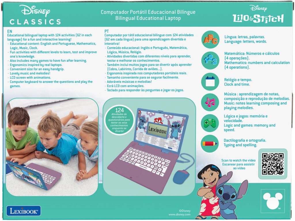 *Educational laptop with 124 activities (62 in each language) for a fun and interactive learning experience with Stitch!