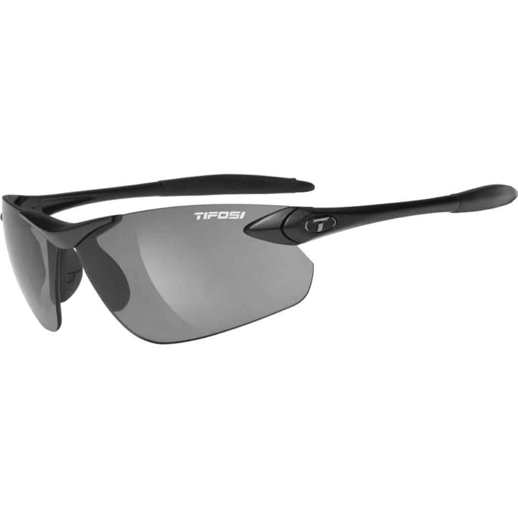 Tifosi glasses Seek FC, color: matte black (matte black). Strong TR-90 frame, non-slip rubber on the adjustable nose wing and legs. FC stands for full coverage. Smoke glare guard lenses are ideal during sunny conditions. The neutral tint of the smoke glass prevents color distortion.