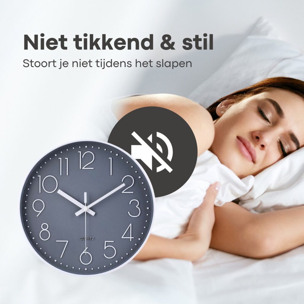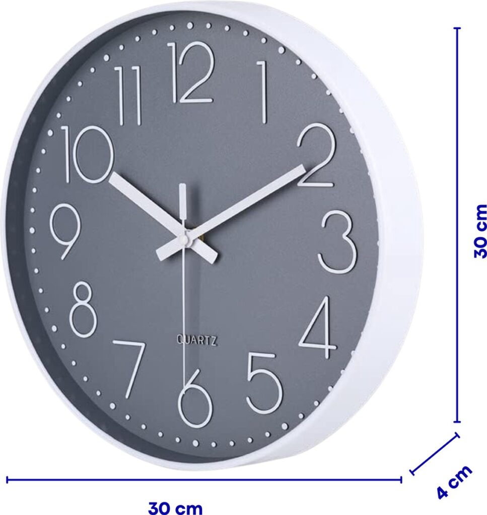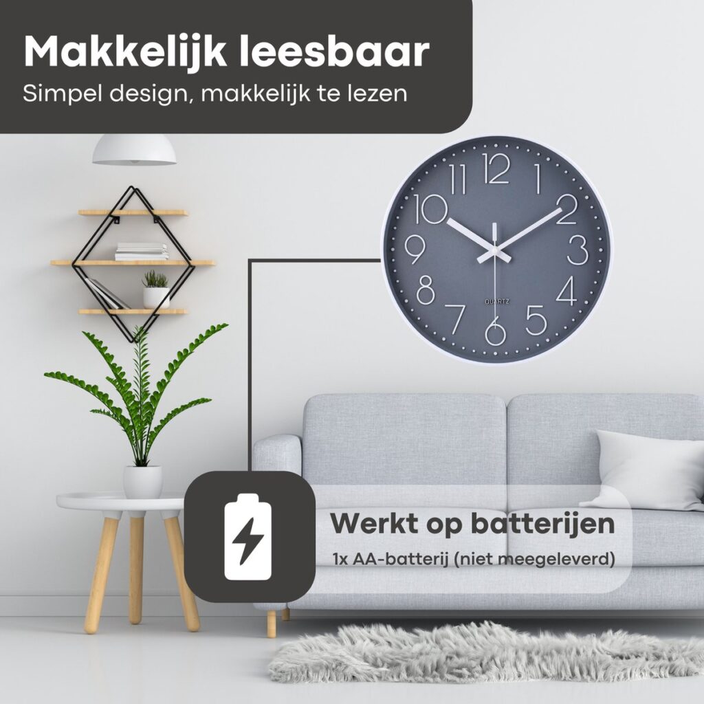 Add a touch of elegance to any space with our Tyme Wall Clock. The clock has a diameter of 40 cm and a stylish modern design. This wall clock is not only a functional accessory, but also a beautiful decoration. Thanks to its whisper-quiet operation and large, easy-to-read numbers, it is the perfect addition to any wall. YOUR BENEFITS: * Stylish design for a sophisticated look * Whisper-quiet operation without ticking noise * Large numbers for easy reading * Anti-reflective glass for clear display * Runs on 1x AA battery for easy maintenance ENJOY PEACE AND QUIET The Tyme Wall Clock operates without annoying ticking noises. The precision movement ensures whisper-quiet operation, allowing you to enjoy your surroundings without distraction. ANTI-REFLECTIVE GLASS FOR CLEAR DISPLAY The anti-reflective glass of our clock ensures a clear and distinct display, even in bright light. This allows you to always read the time without being bothered by annoying glare or reflections. IMPROVED APPEARANCE The Tyme Modern Wall Clock combines functionality with elegance thanks to its refined design and high-quality finish. Whether in your living room, office, or bedroom, this clock adds a touch of class to any space. LARGE NUMBERS FOR EASY READING The clock features large, clear numbers that are easy to read even from a distance. This makes it easy to see the time at a glance, allowing you to better plan and organize your day. RUNS ON 1X AA BATTERY Our clock runs on just one AA battery, making it easy to maintain. You don't have to worry about messy wiring or power outlets, so you can hang it anywhere you want. PACKAGE CONTENTS: * Tyme wall clock Gray/White (1x) SPECIFICATIONS: * Dimensions: 40 x 40 x 4 cm * Diameter: 40 cm * Color: Gray/White * Power: runs on 1x AA battery * Movement: super-quiet quartz (no ticking)