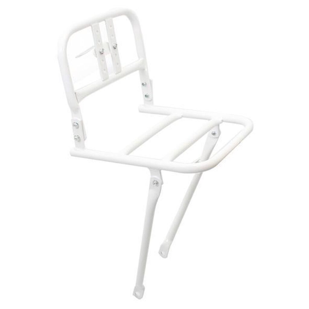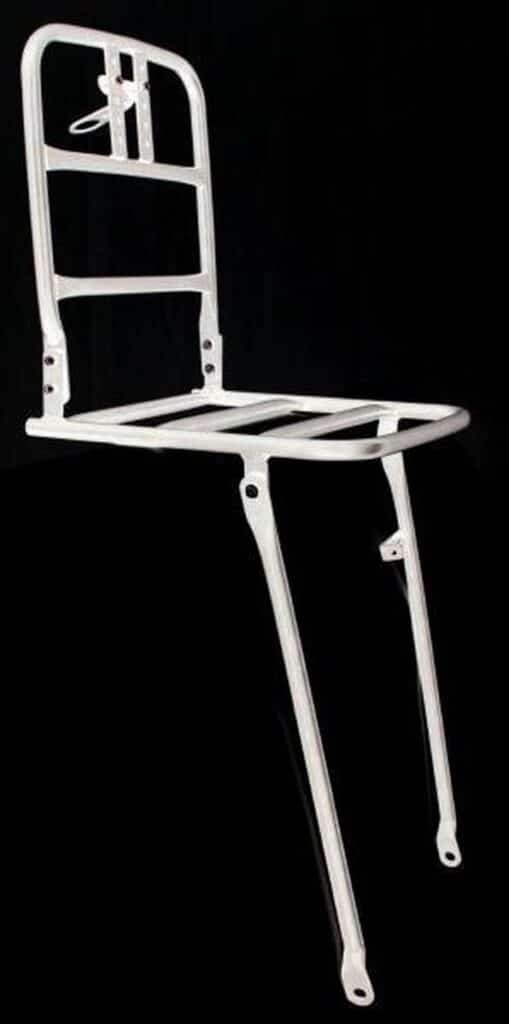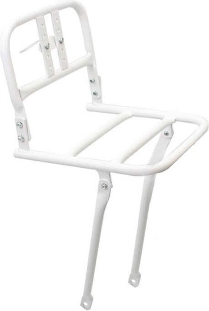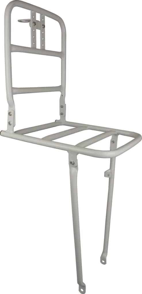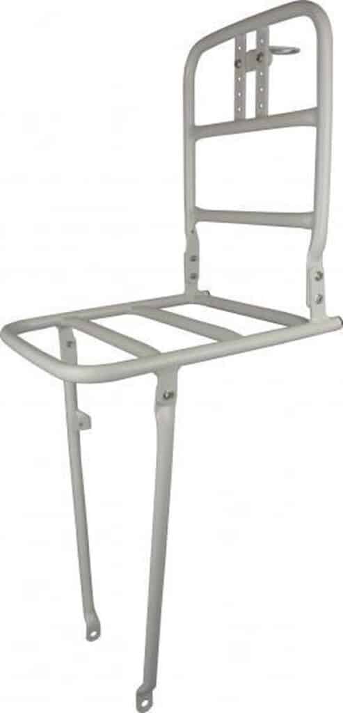 This sturdy and convenient front carrier is easy to attach to the front of your bike. You easily attach the front carrier to the steering head and the axle of your front wheel. The front carrier has a bracket for attaching a front light.