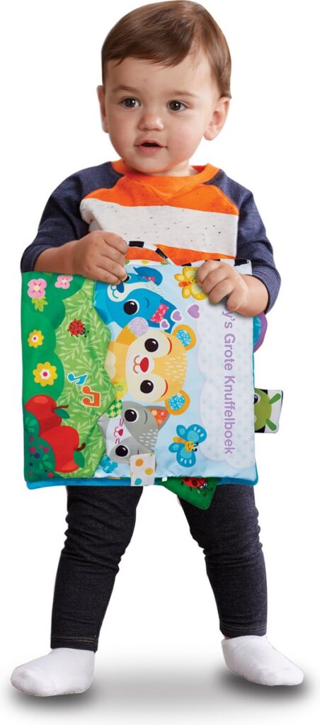 This large, soft book with six pages contains various movable parts, materials, and textures that stimulate the senses. Includes an electronic bear that gives cheerful responses.