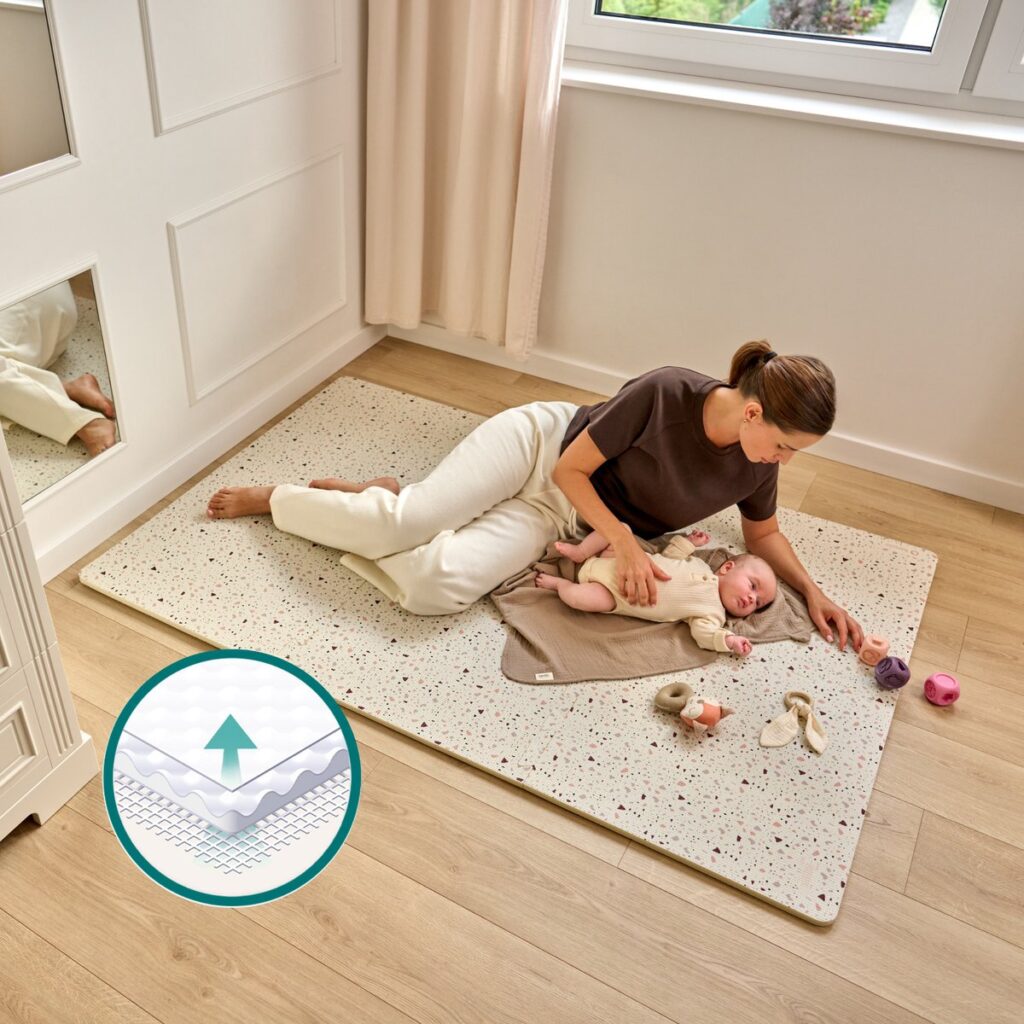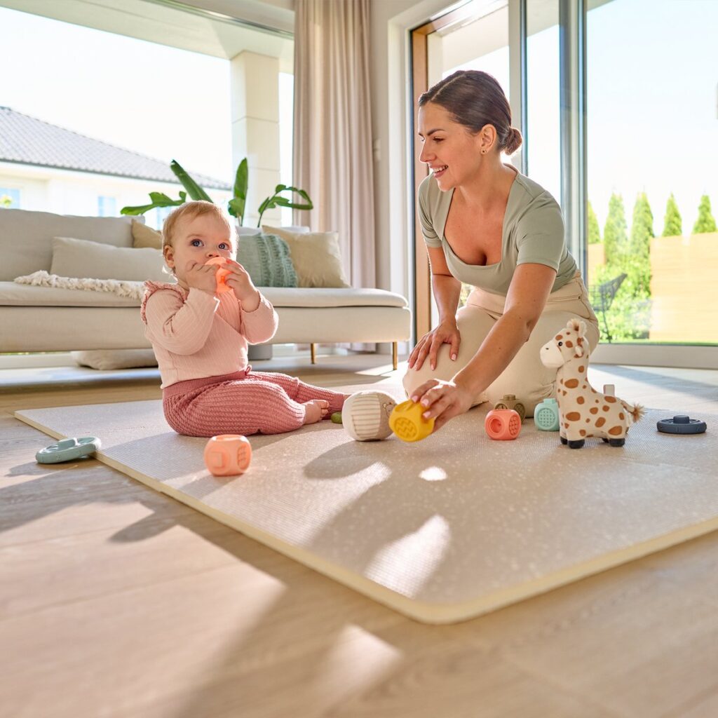Yoka is meer dan alleen een speelmat – het is een multifunctioneel kleed dat werkt als zachte basis voor babygym-bogen, activiteiten-speelgoed en dagelijkse speelmomenten. Dankzij het veilige materiaal en het tijdloze ontwerp is het een logisch cadeau voor elke baby-uitzet en een praktisch kraamcadeau waar ouders dagelijks plezier van hebben. Zowel voor speelgoed 0-6 maanden als speelgoed 1 jaar blijft de mat een comfortabele basis.