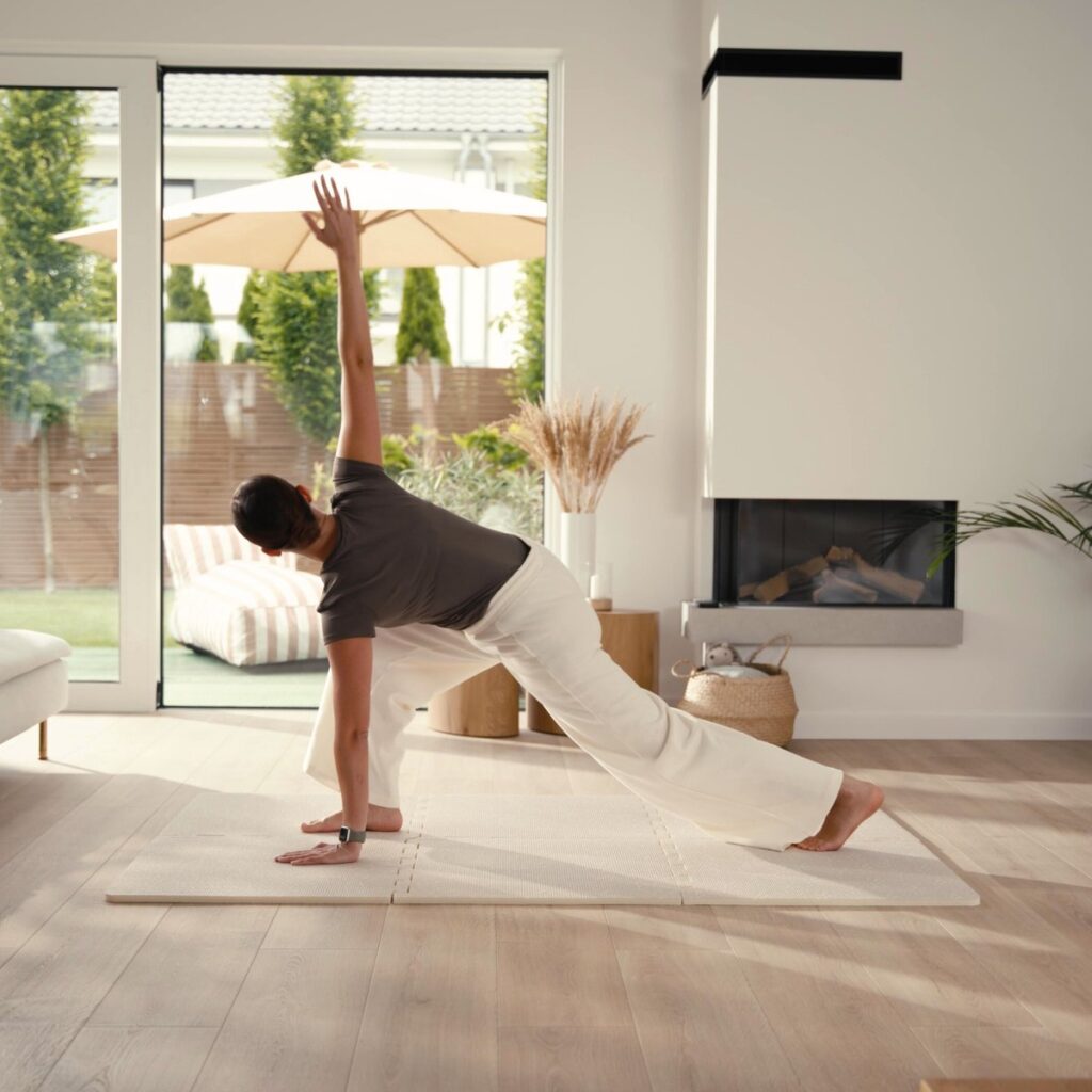 De mat laat zich snel uit elkaar halen en opvouwen. In de meegeleverde opbergtas berg je de tegels compact op of neem je ze eenvoudig mee. Zo wordt de Yoka-ondergrond in een handomdraai verplaatst van de woonkamer naar de tuin, logeeradres of vakantiehuis – ideaal voor binnen en buiten.
