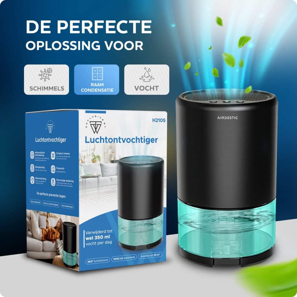 ultra puissant et compactCe déshumidificateur haut de gamme élimine jusqu'à 350 ml d'humidité par jour et transforme votre pièce en une oasis parfaitement assainie. De plus, le déshumidificateur Airdestic est compact et léger. Vous pouvez ainsi le déplacer et le ranger facilement.
