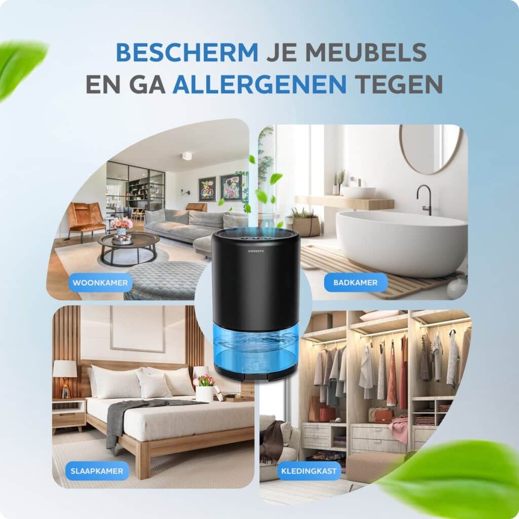 Voor het beste resultaat plaats je de luchtontvochtiger in een ruimte tussen 10m² tot 25m². Gebruik hem dus in kleine ruimtes zoals de bijkeuken, maar ook in grotere ruimtes zoals de slaapkamer! De gewenste kamertemperatuur is tussen 5°C en 50°C. De luchtontvochtiger zal niet goed werken bij kamertemperaturen onder 5°C of onder 45% luchtvochtigheid. Er zit dan te weinig vocht in de lucht.