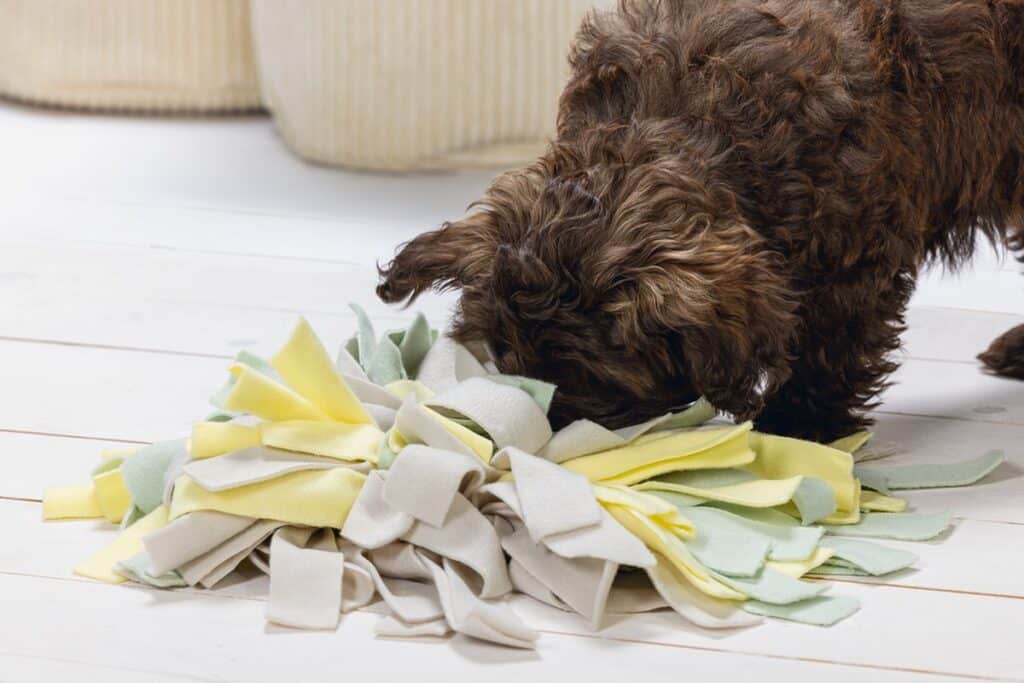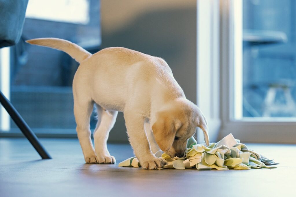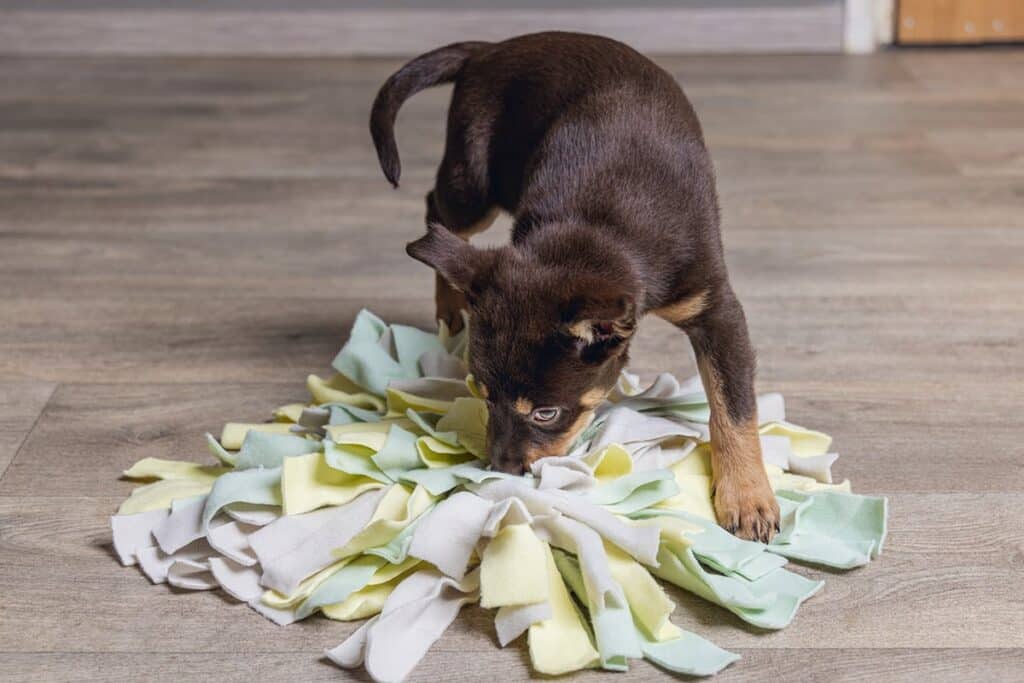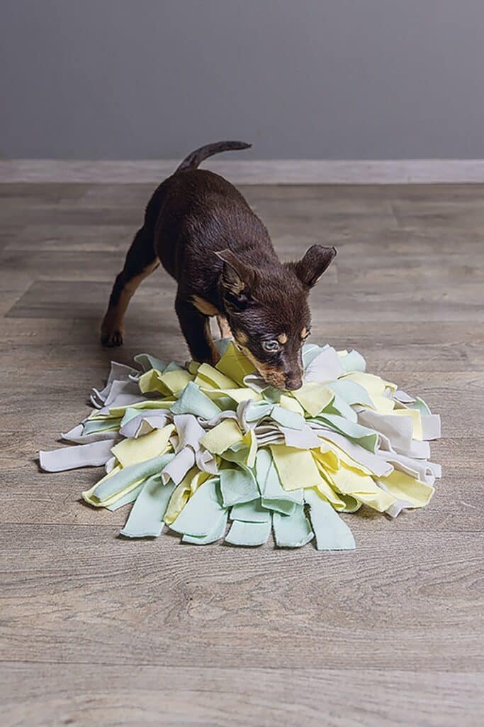 joggingstof, voelt het lekker zacht aan voor de neus. Met een snuffelmat kun je samen met jouw pup spelen, wat ook nog eens de band tussen jullie versterkt. Let op: zorg ervoor dat jouw pup niet op de mat gaat bijten