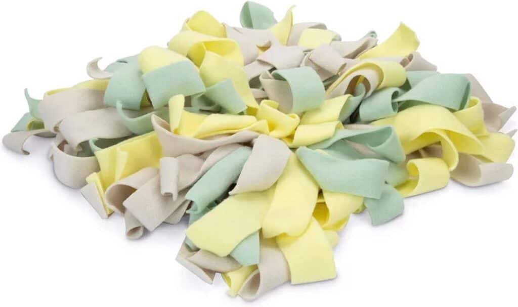 De Beeztees Puppy Sniffy Snuffelmat geeft jouw pup heel veel uitdaging. Deze snuffelmat kun je gebruiken om koekjes of andere lekkernijen in te verstoppen. Door de vele slierten, zal jouw pup veel moeite moeten doen om de snacks te vinden. Deze mat bestaat uit allemaal verschillende gekleurde stroken, kort en lang. Doordat de mat is gemaakt van
