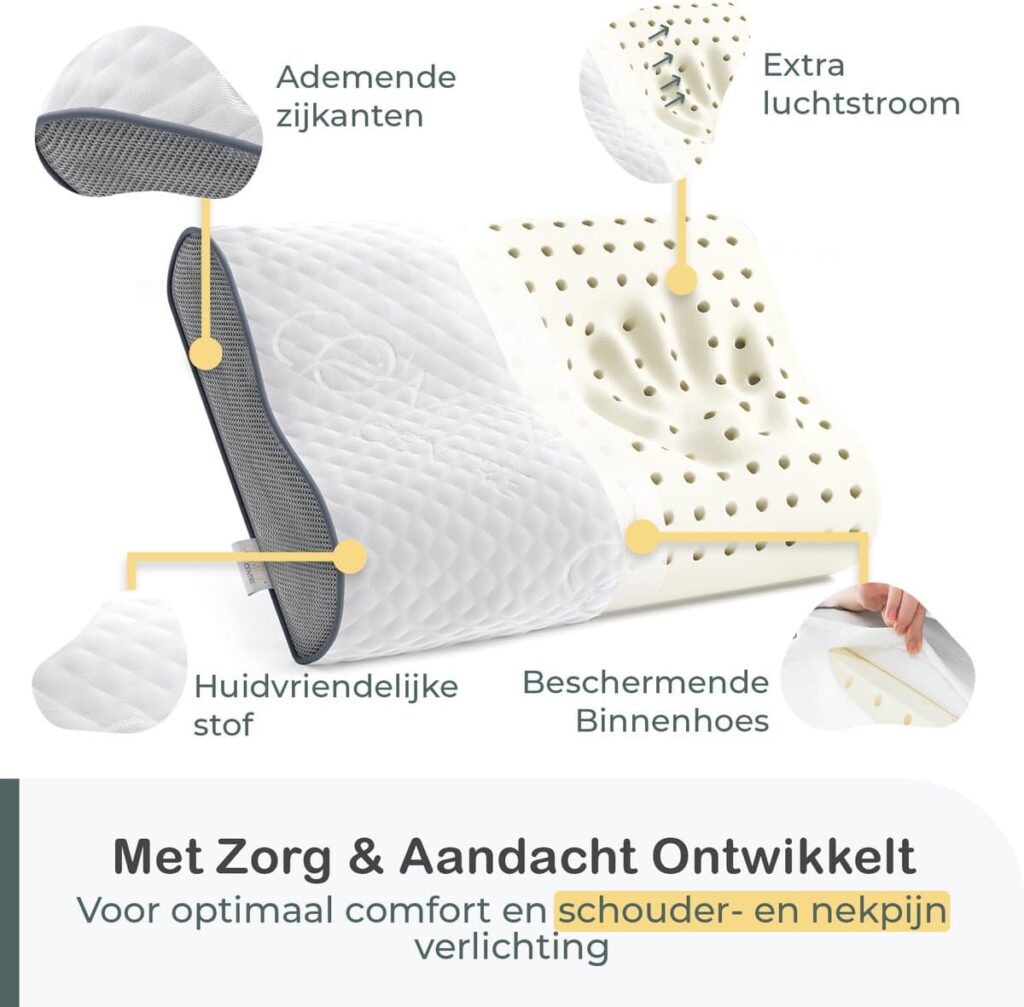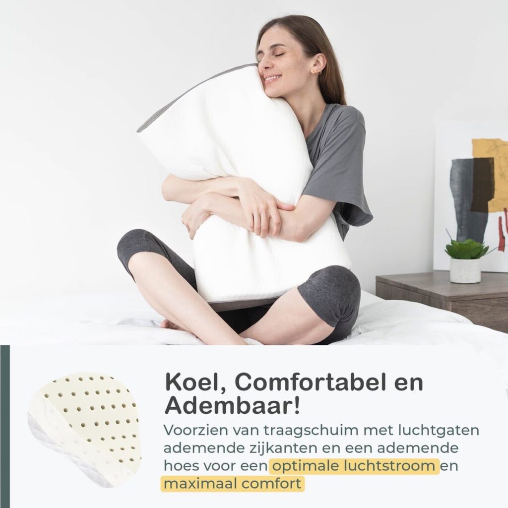 Conception ergonomique pour des vertèbres cervicales saines La conception ergonomique avec des côtés réglables garantit que vos vertèbres cervicales reposent toujours dans une position naturelle et confortable. Choisissez facilement la hauteur qui vous convient le mieux, qu'elle soit plus haute ou plus basse.