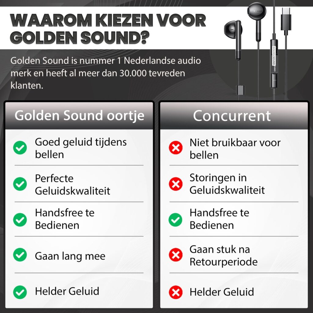 Vous préférez toujours les écouteurs filaires pour lesquels l'autonomie de la batterie n'est pas un problème ? Optez pour les écouteurs filaires de Golden Sound ! Après tout, vous n'aurez jamais à les recharger 😉
