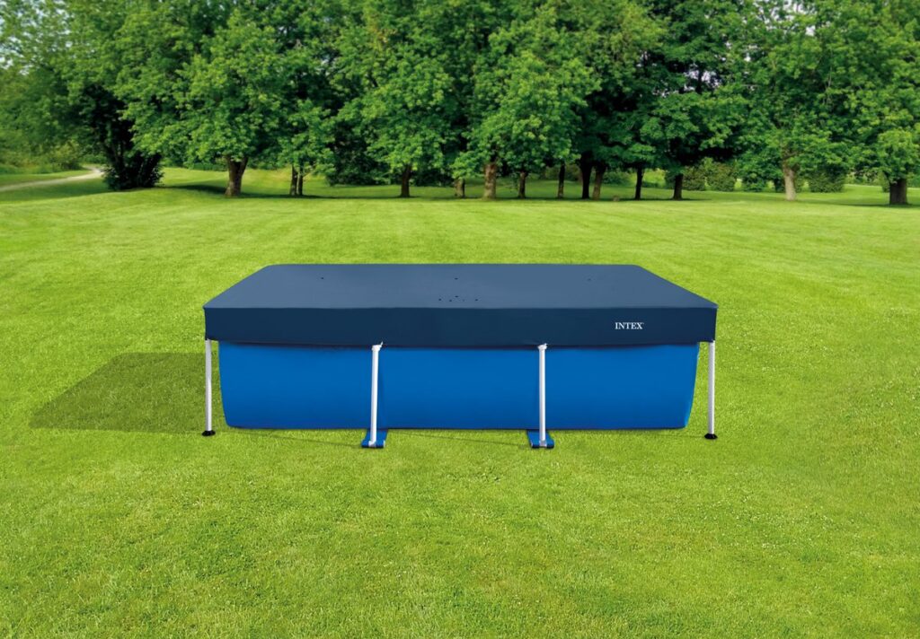 Note : La couverture de la piscine contient des trous qui sont peu visibles sur la photo.