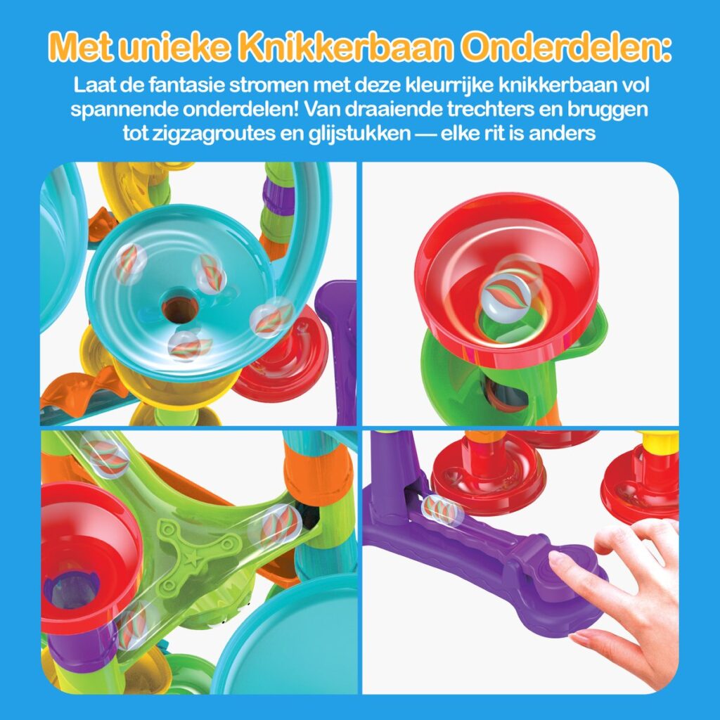 Avec le kit S05, les enfants peuvent facilement construire leur premier circuit à billes, mais aussi des variantes plus complexes pour les constructeurs avancés. Les possibilités sont infinies, les parcours illimités et chaque descente reste passionnante.