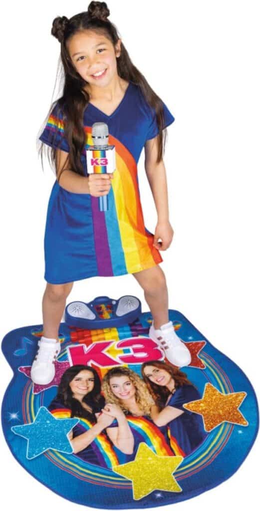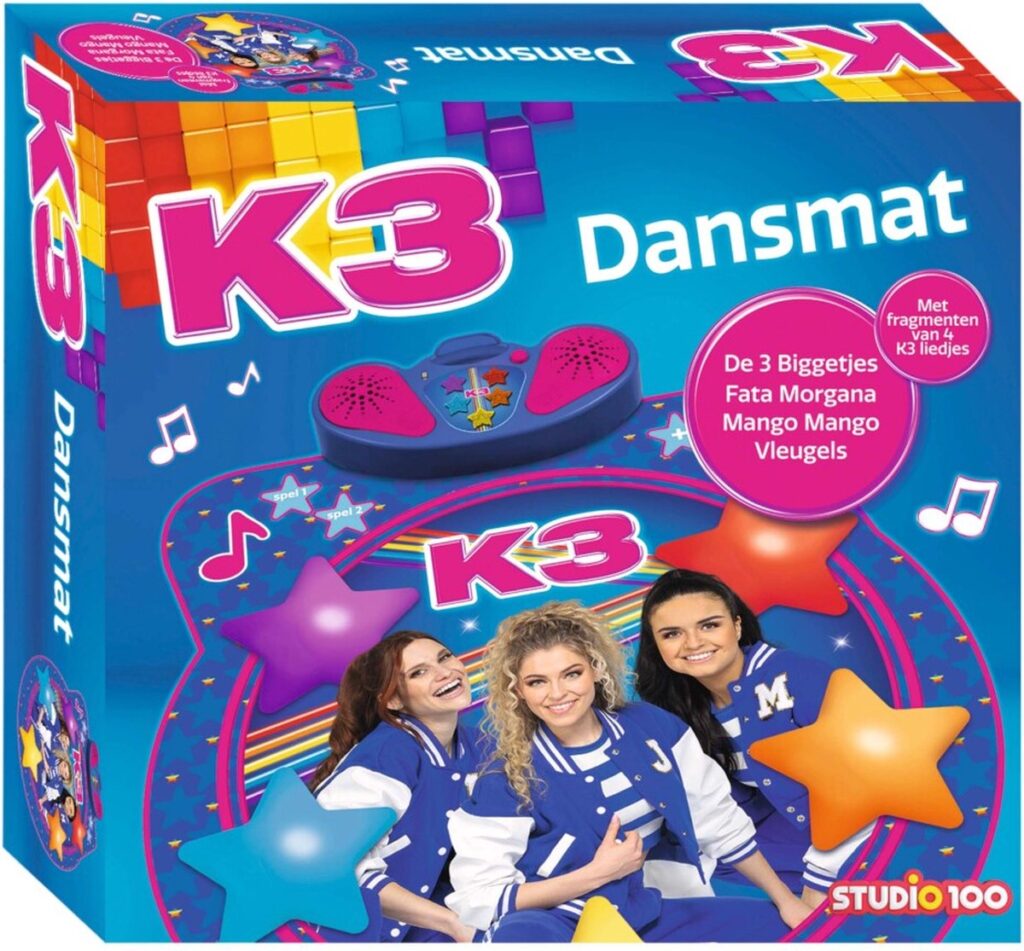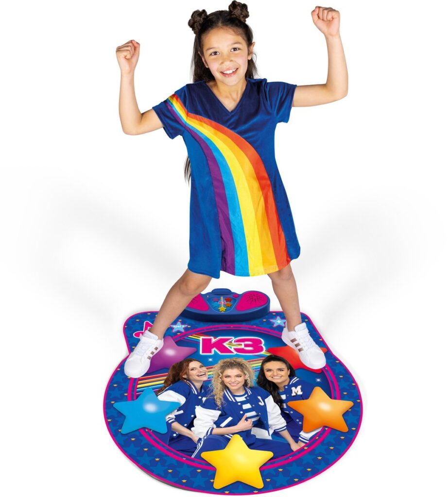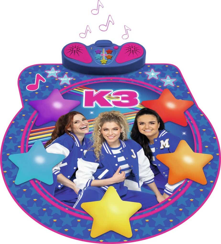 Tu veux danser et bouger ? Avec le tapis de danse K3, tu peux te défouler ! Invente tes propres pas de danse ou bouge au rythme des derniers tubes de K3. Suis les lumières sur le juke-box et répète ta chorégraphie. Tu es prêt ?