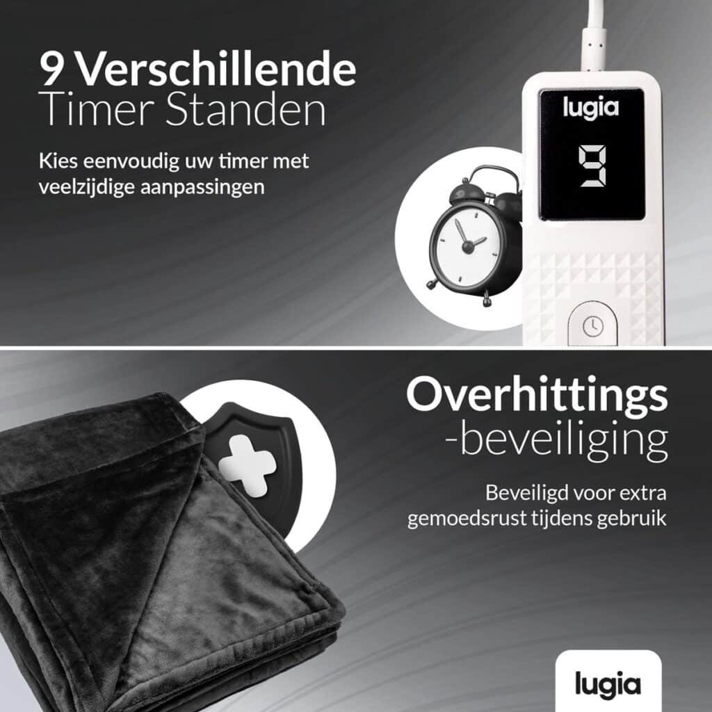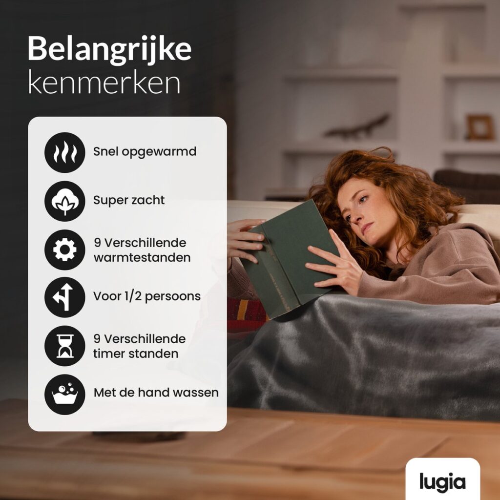 La couverture électrique XL de Lugia vous réchauffe rapidement et en toute sécurité, exactement quand vous en avez besoin. Grâce à ses puissants éléments chauffants, vous sentez la chaleur monter en quelques minutes, et vous n'avez donc pas à attendre longtemps pour vous mettre à l'aise. De plus, la couverture est équipée de fonctions de sécurité avancées, telles que la protection contre la surchauffe, afin que vous puissiez vous détendre en toute sérénité. Profitez de la chaleur sans vous inquiéter.