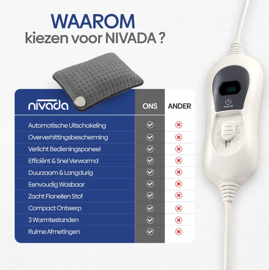 La polyvalence de l'oreiller chauffant NIVADA le rend idéal pour une variété d'applications. Que vous soyez chez vous et ayez besoin de vous détendre après une longue journée ou que vous cherchiez à soulager des tensions musculaires, ce coussin chauffant s'adapte sans effort à vos besoins. La combinaison des réglages de chaleur et de la fonction de minuterie offre une expérience avancée et personnalisable au-delà des coussins chauffants conventionnels sur le marché.