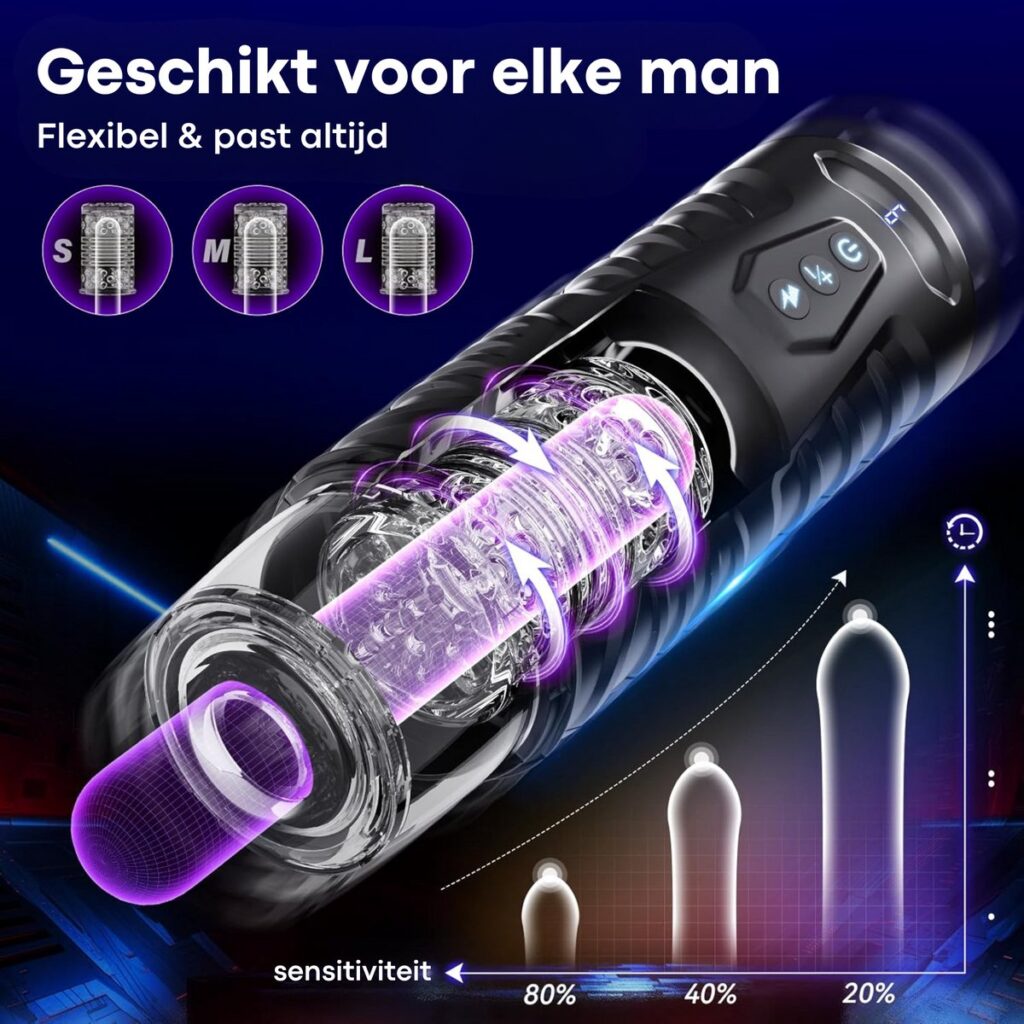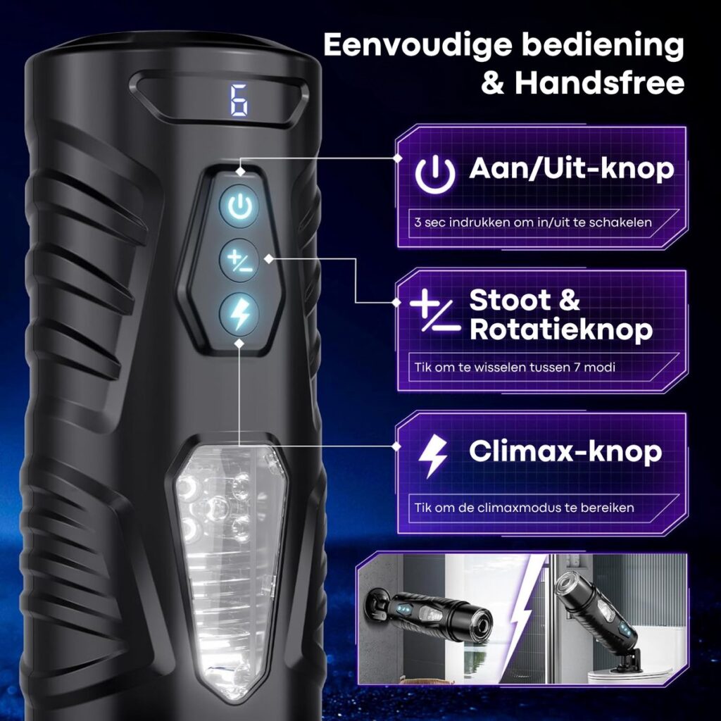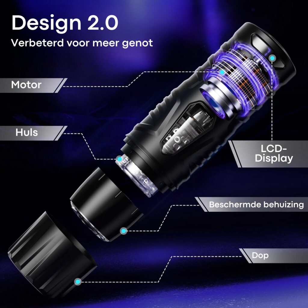 Geen gedoe met batterijen of handmatig bedienen: deze masturbator werkt elektrisch en is eenvoudig op te laden via USB. Het duidelijke LCD-scherm toont batterijstatus en actieve modus, zodat je altijd het overzicht hebt.