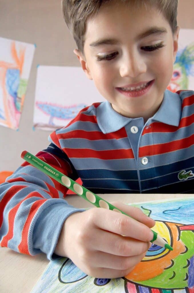 Tous les produits STABILO EASYstart ont été développés en collaboration avec des parents, des enseignants, des enfants et des experts en ergonomie. Les produits sont conçus de manière ergonomique et s'adaptent parfaitement à l'anatomie de la main de l'enfant en termes de poids, de taille et de forme. Ainsi, les stylos et crayons tiennent bien dans la main et les enfants les tiennent intuitivement de la bonne manière. Ils peuvent ainsi (apprendre à) écrire de manière détendue et les muscles fatigués et les problèmes de crampes appartiennent au passé. Les enfants peuvent se concentrer pleinement sur l'entraînement et l'écriture des lettres et ne doivent plus se préoccuper de la tenue de leur stylo ou de leur crayon.
