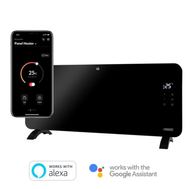De Princess Smart Glazen Paneel Verwarming is een strak vormgegeven verwarming die past in elk interieur. Is jouw studeerkamer in de winter ook altijd zo koud? Dan is de Princess Smart Glazen Paneel Verwarming ideaal. Met 2000 W vermogen verwarmt dit glazen paneel de kamer extra snel en efficiënt. De elegante paneel verwarming kan zowel staand gebruikt worden of bevestigd worden aan de muur en is hierdoor geschikt als permanente verwarming. Bedien dit paneel eenvoudig met de touch knoppen op de verwarming.