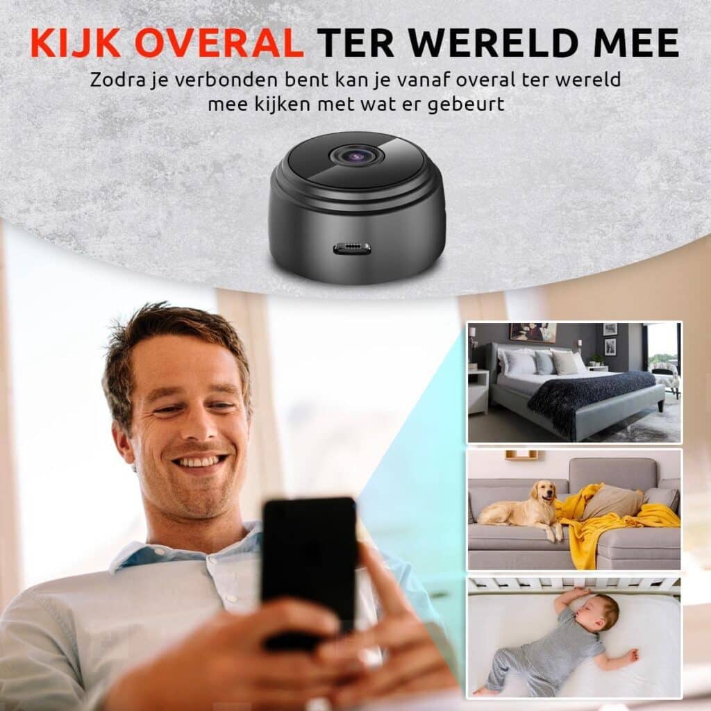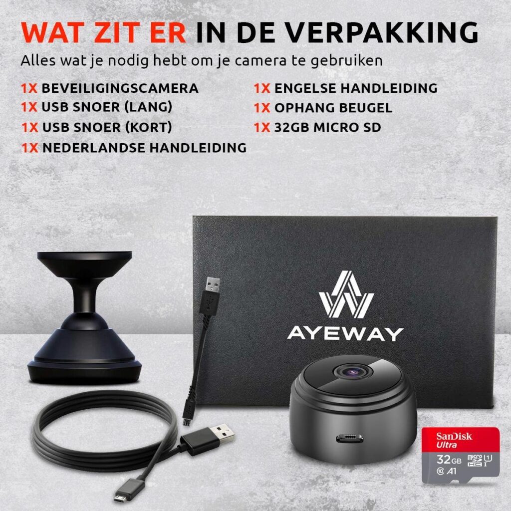 Altijd willen zien wat er in je huis gebeurt? Ook als je er zelf niet bent? Dan is deze AyeWay Spy Camera ideaal voor jou. Met de draadloze functie kan jij waar dan ook ter wereld zien wat er gebeurt in je huis. En heb je even geen tijd om te kijken? Geen zorgen! Door de mee geleverde SD kaart wordt alles opgeslagen en kan je op elk moment terugkijken wat er is gebeurd. Ook krijg je direct een melding zodra er bewegings is in het gebied van de camera.