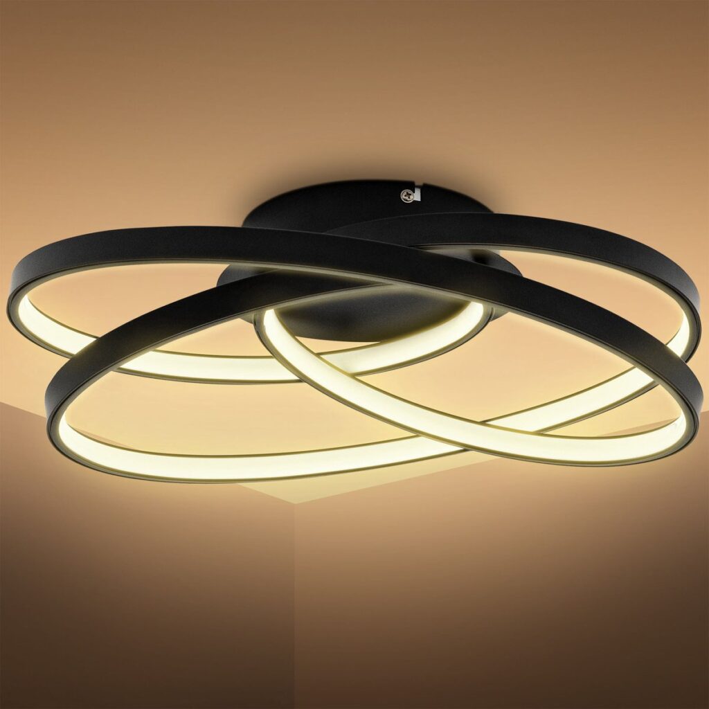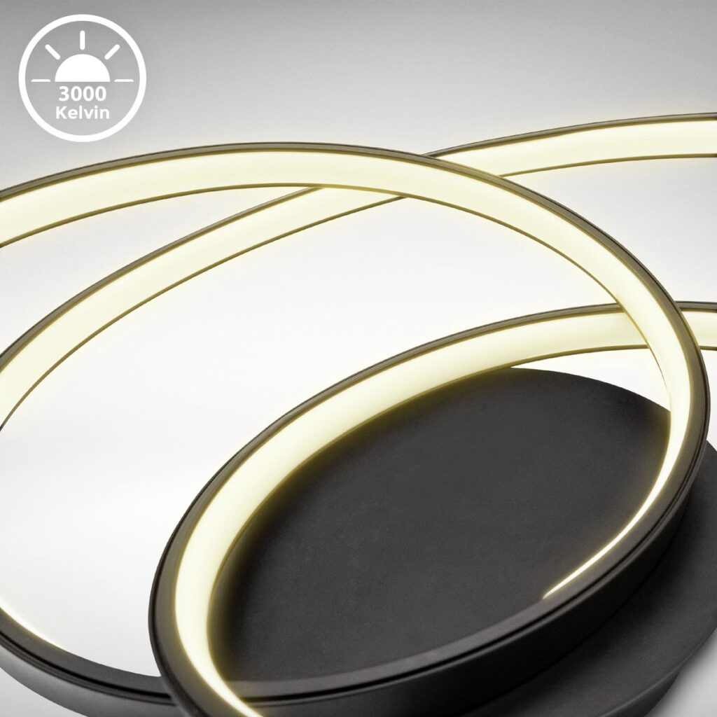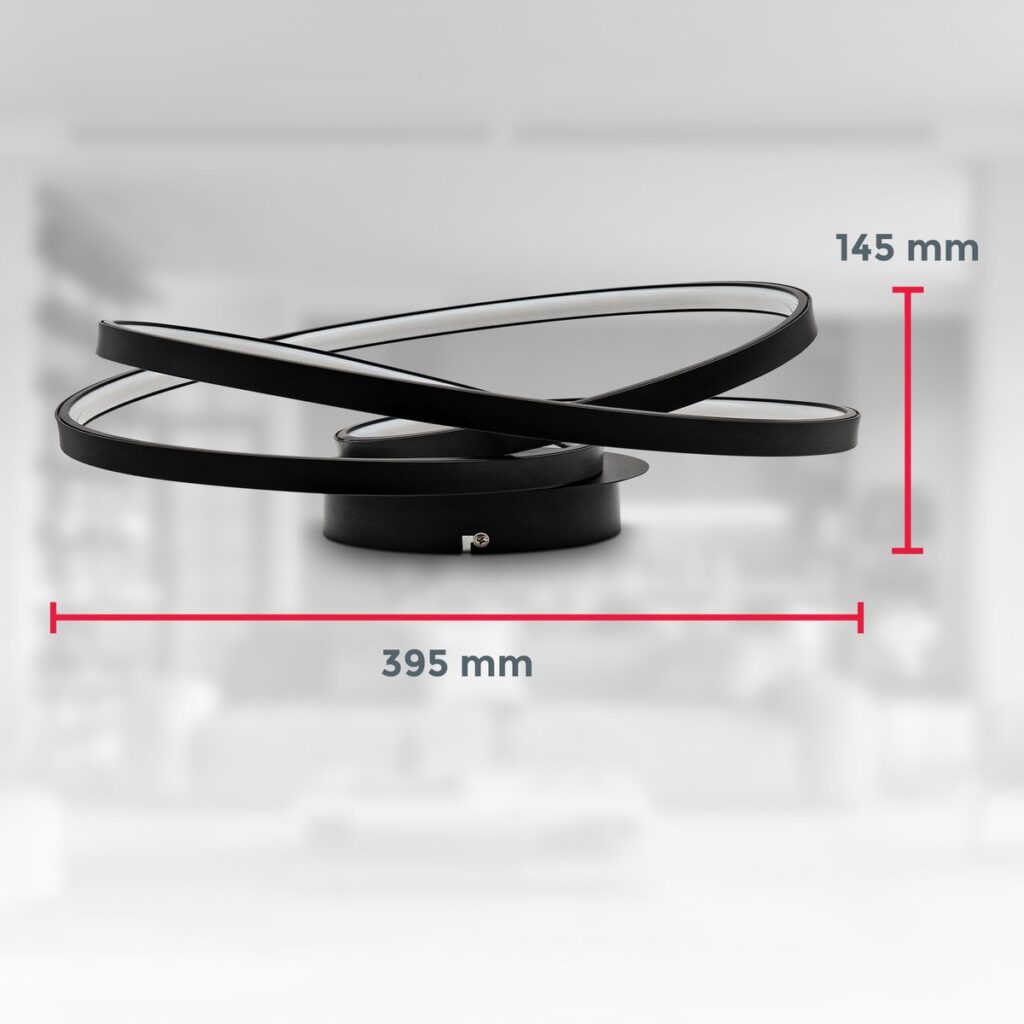 De LED-plafondlamp is zwart en gemaakt van onderhoudsvriendelijk kunststof. De lichtbron bestaat uit een doorlopende, gebogen ring en zorgt voor een moderne en losmakende sfeer.