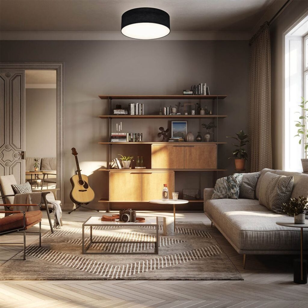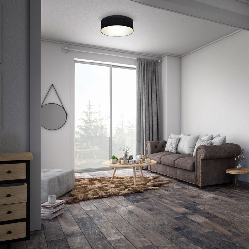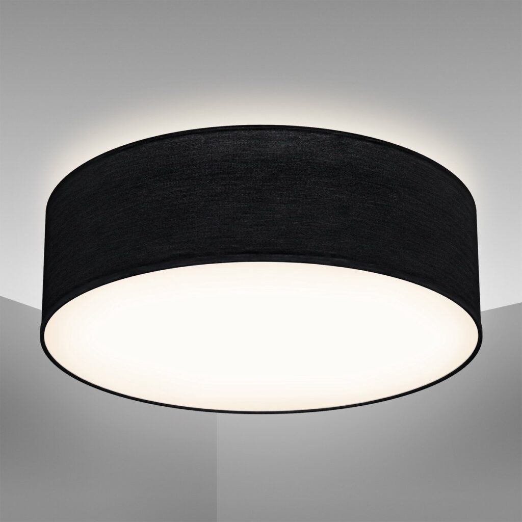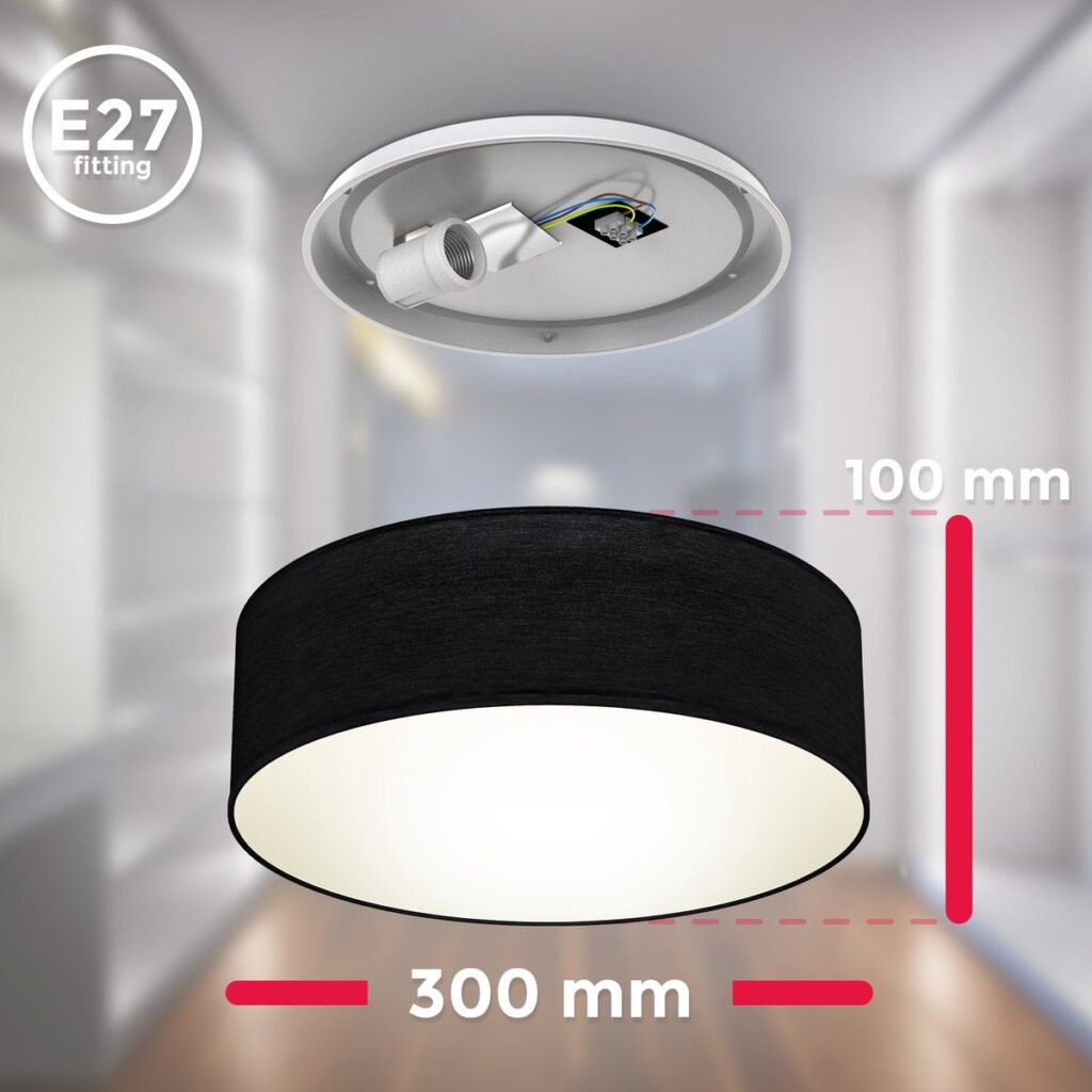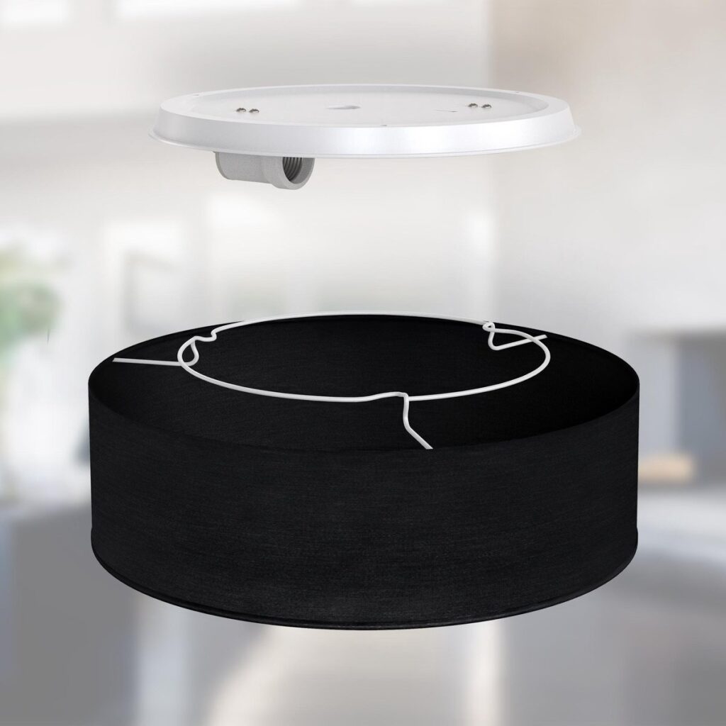 Deze 1-lichts, ronde stoffen plafondlamp in het zwart biedt een geweldige verlichting met een elegant design. De textiele plafondlamp met IP20 bescherming is perfect voor binnenruimtes zoals woonkamer, slaapkamer, eetkamer, kantoor, studeerkamer, hal, gang of kinderkamer.