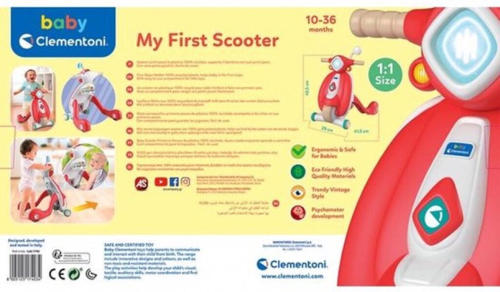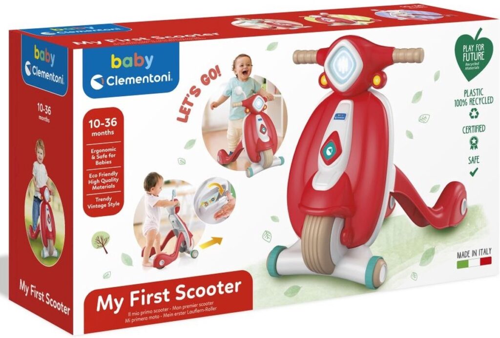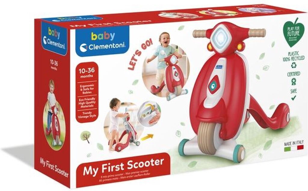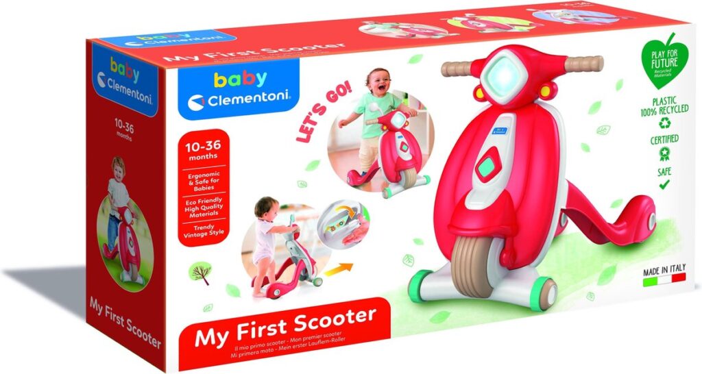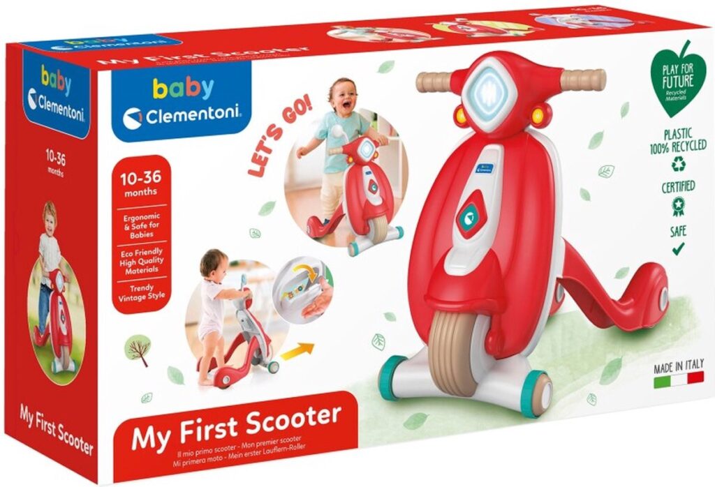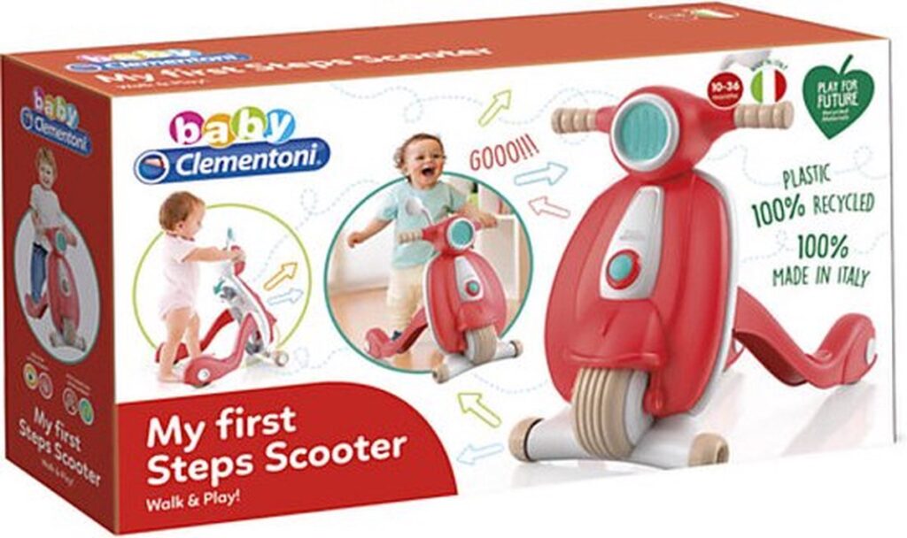 Een lieve, vintage design scooter gemaakt van 100% gerecycled materiaal om je kind te helpen plezier te maken bij het zetten van zijn eerste stappen in deze wereld! Een scootervormige loopwagen om de ontwikkeling van de motorische vaardigheden, coördinatie en ruimtelijke perceptie van kinderen te stimuleren. Inclusief een opbergvak waar kinderen kleine persoonlijke bezittingen kunnen bewaren. 100% gemaakt in Italië