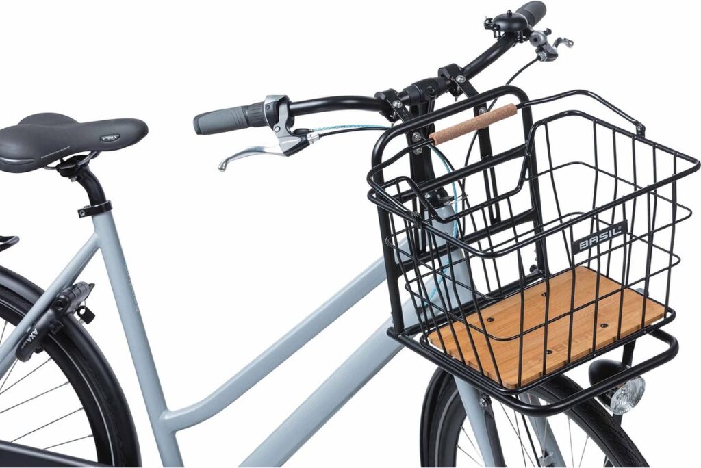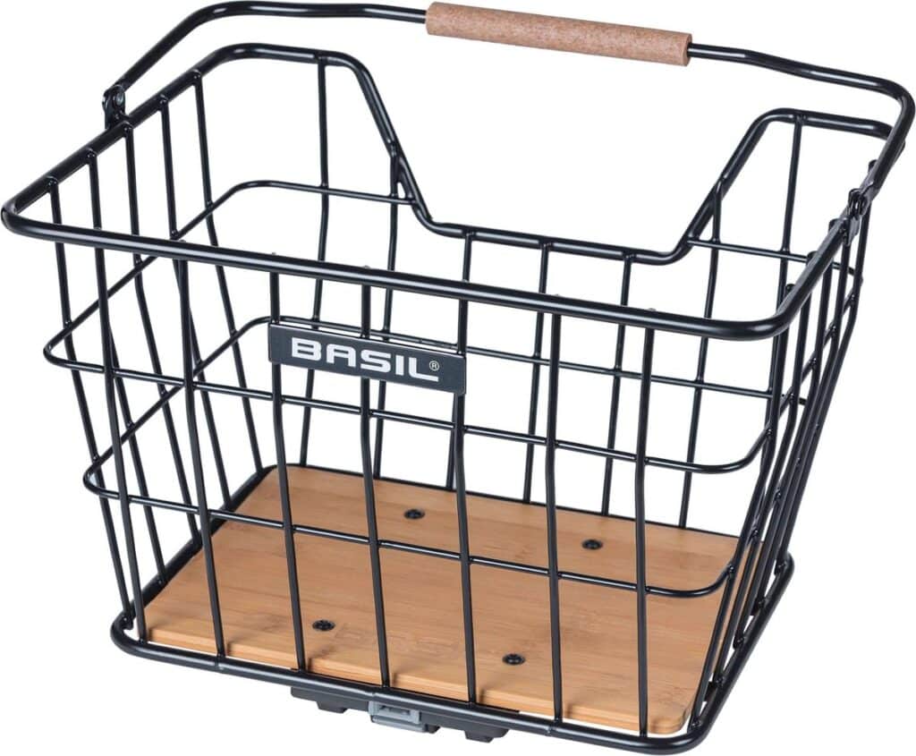Ben je op zoek naar een moderne fietsmand? Dan is de Basil Nordland MIK fietsmand iets voor jou! De afneembare mand is gemaakt van een robuust staal in combinatie met een bamboe bodem. Met een inhoud van 23 liter is de mand ideaal voor het doen van je dagelijkse boodschappen. Zo komt de mand van pas bij je wekelijkse bezoek aan de markt.