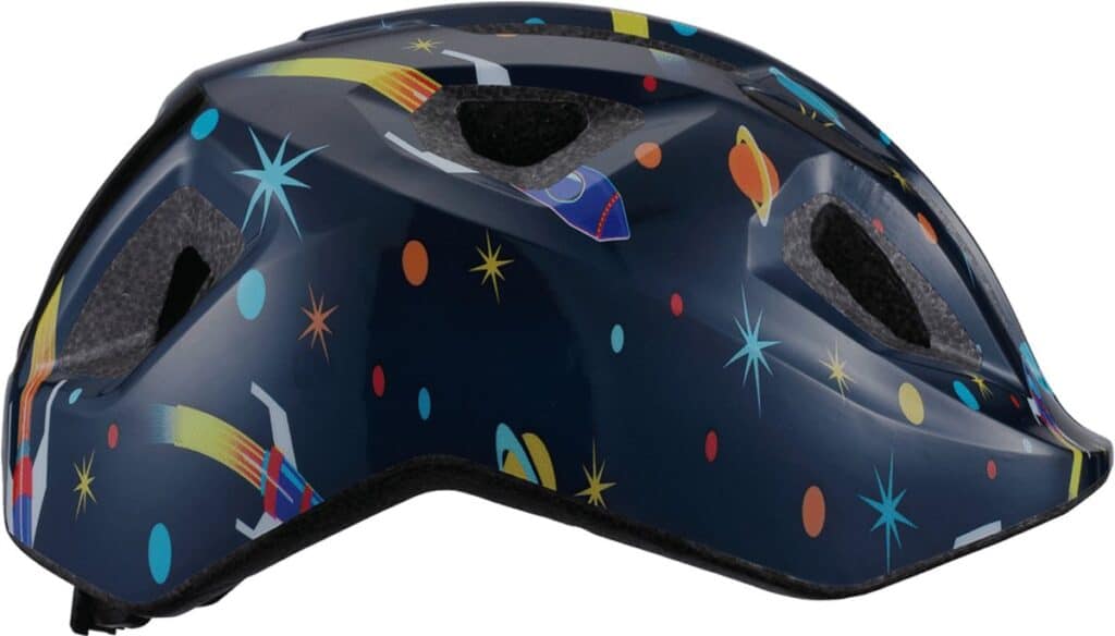 De Hero is beschikbaar in twee maten en komt in verschillende vrolijke design thema’s zoals een rode brandweer variant, blauwe astronaut print en roze palmbomen. De voorkant van de helm is iets dikker zodat de helm het gezicht zal beschermen wanneer het kind met het gezicht naar voren valt. De achterkant is dieper, zodat de achterkant van het hoofd extra wordt beschermd. Bekijk de specificaties van de kinderhelm hieronder.