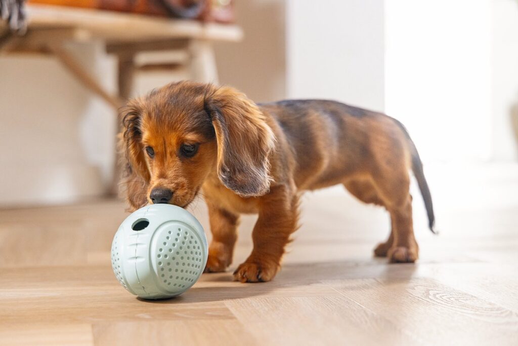 Aan de voorkant van het ei zit een gat, waarin je snoepjes of brokjes kan stoppen voor jouw pup. Doordat het gemaakt is van rubber, kan het ei wel tegen een stootje. Gegarandeerd speelplezier!