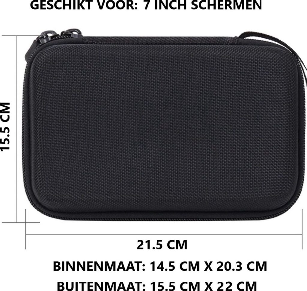 De hoes beschermt uw navigatiesysteem goed dankzij de hardcase buitenkant en pluche voering. De ingebouwde schermprotector beschermt het scherm tegen krassen en beschadigingen. Breng ook uw kabels en andere accessoires mee in het extra vakje. De hoes is voorzien van een degelijke dubbele ritssluiting en is hierdoor makkelijk af te sluiten.